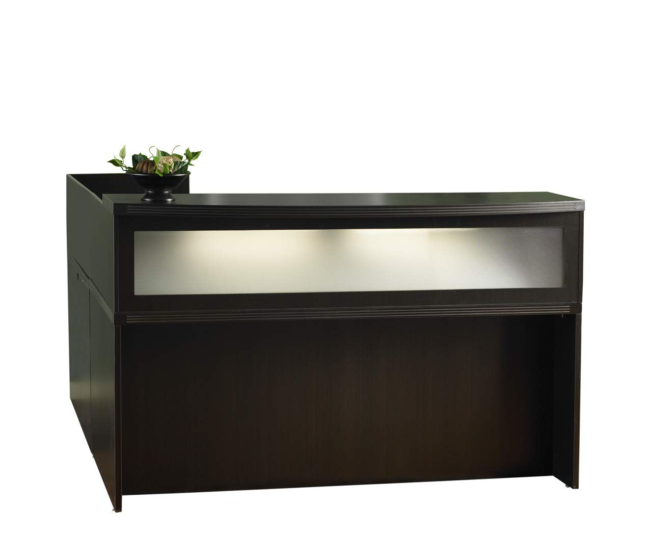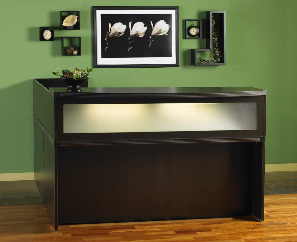 Aberdeen Series 72"W X 42"D X 15 5/8"H Transaction Counter. Features A Textured Glass Front Panel. 1 5/8" Thick Bow Front Counter With 6" Overhang. For Use With Main Reception Desk Ard7236Ldc, Sold Separately. Complements All Aberdeen Series Furniture.