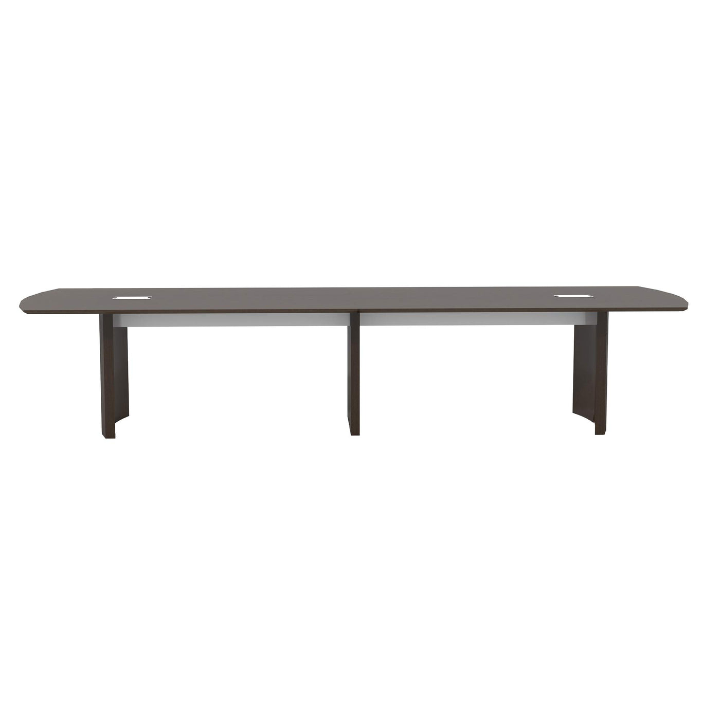 Safco Medina 14' Conference Table with Moucha Finish, Rounded Ends and Beveled Edges, Silver Detailing, Grommet Holes, 250 lbs Capacity.