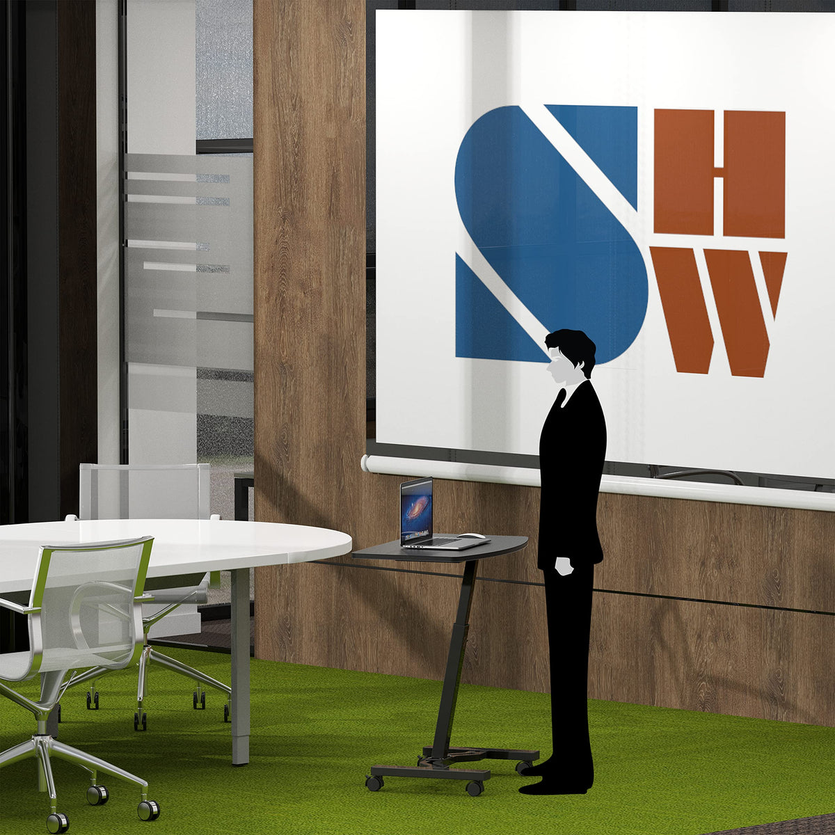 Shw Height Adjustable Mobile Laptop Stand Desk Rolling Cart, Height Adjustable From 28'' To 33'', Black