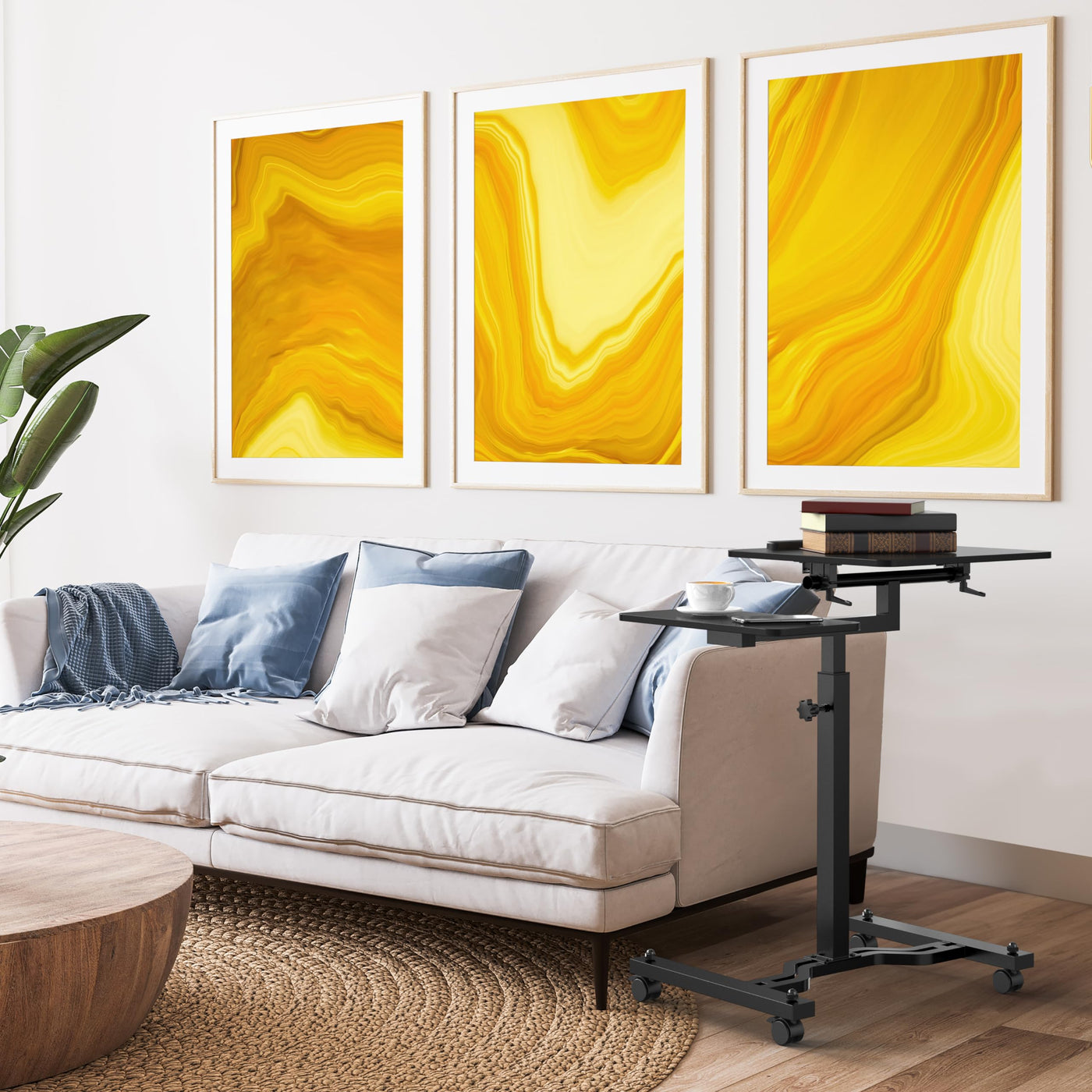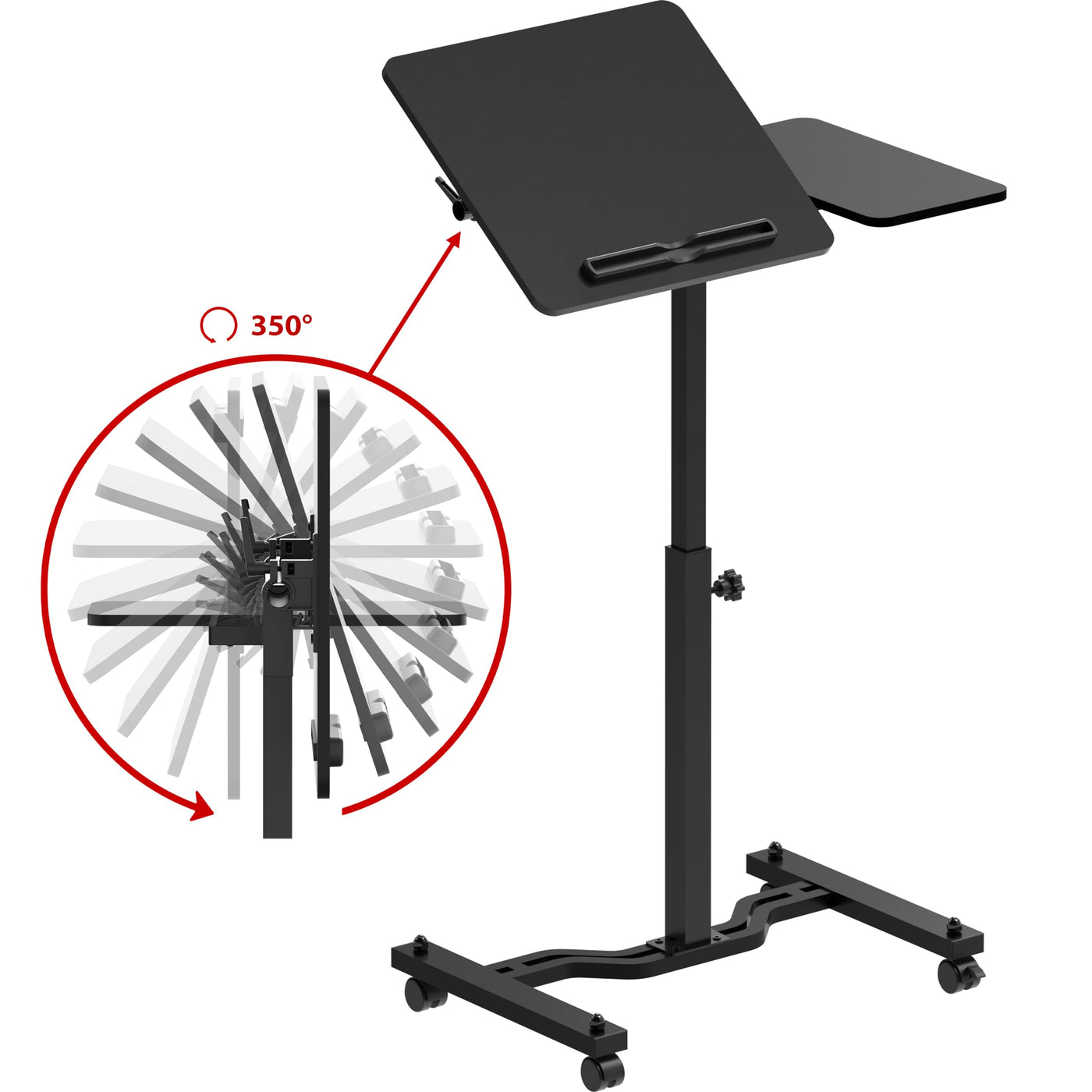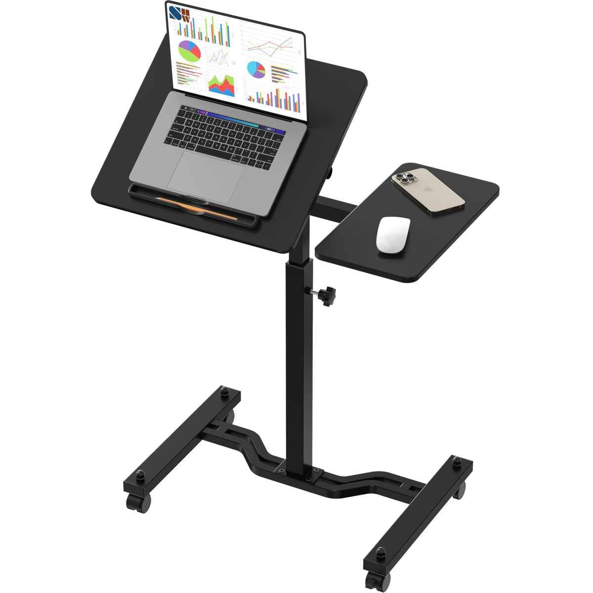 Shw Tim Rolling Adjustable Laptop Cart With Tilting Desktop And Side Shelf, Black