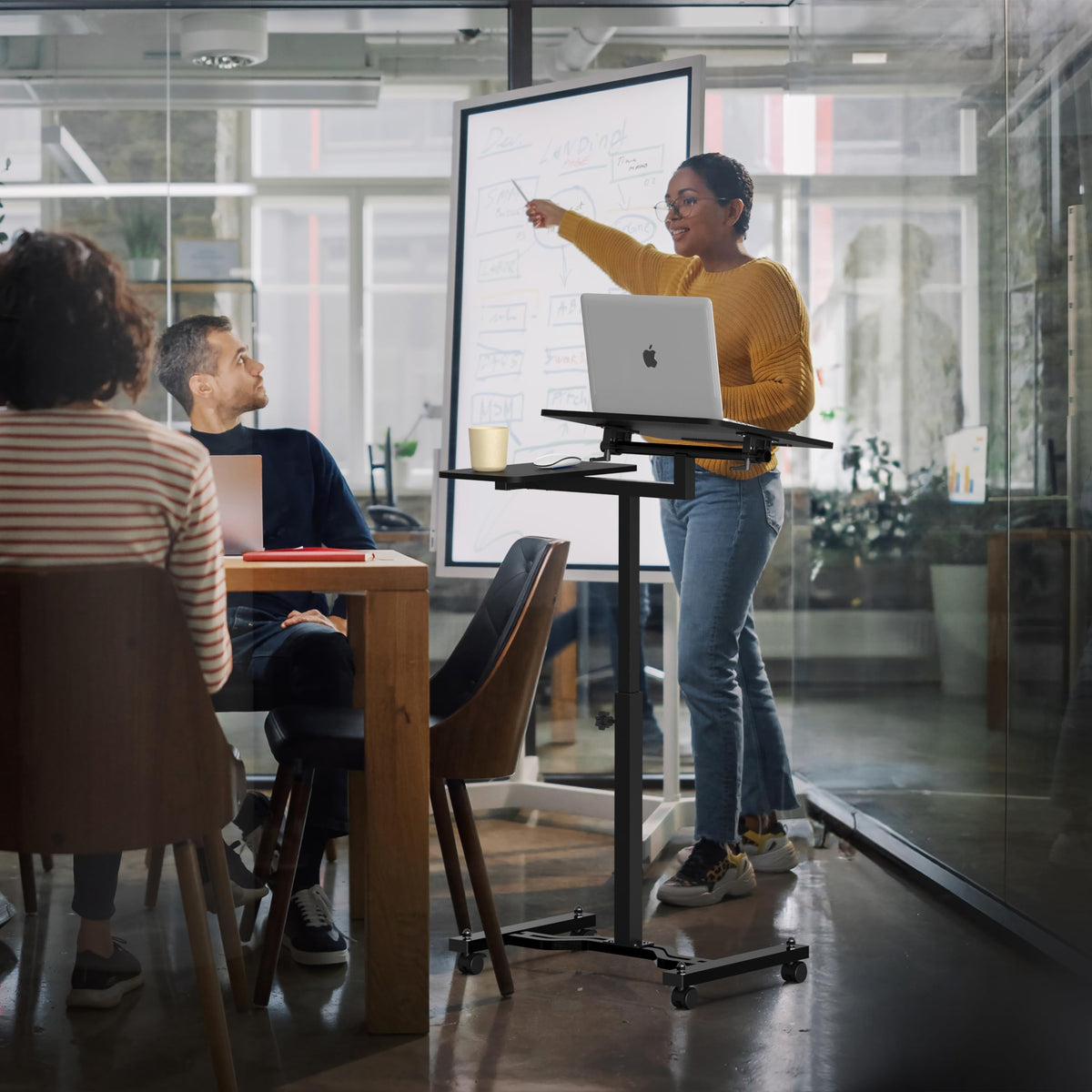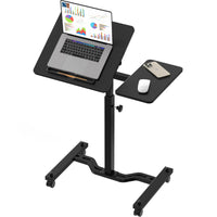 SHW Tim Rolling Adjustable Laptop Cart with Tilting Desktop and Side Shelf, Black