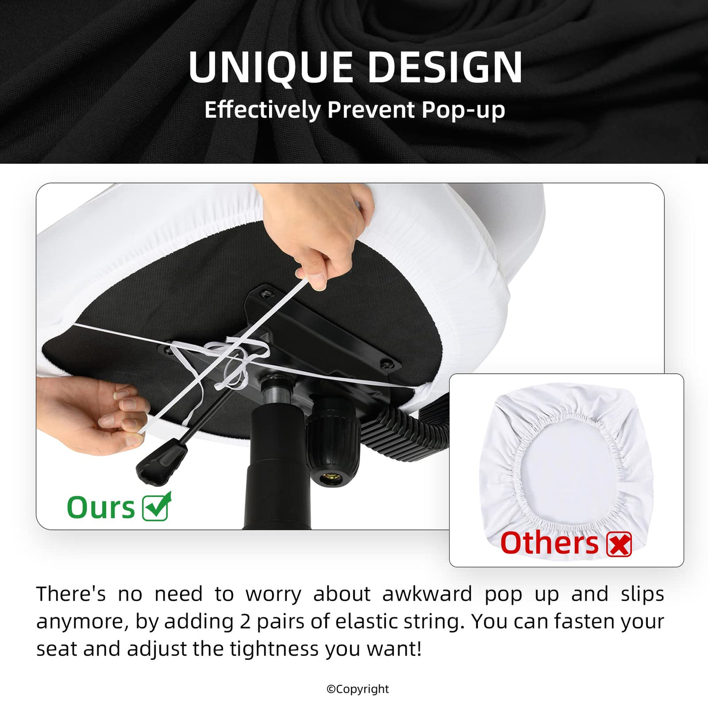 Excellent Features We’ve specially design this new seat cover to set most customer’s complaint: the cover slips and pops from the chair. By adding 2 pairs of elastic string. You can fasten your seat and adjust the tightness you want. There's no need to worry about awkward pop up anymore! Also, it is an affordable way to renew your old chair at half the cost and add style and charm to your work life. Warm Tips Package Includes - 1 x Backrest Cover + 1 x Chair Seat Cover (Not Include Chair) Material - Premium 85% Polyester & 15% Spandex Knit Fabric Easy to Care - For best results wash it in cold water and tumble dry on low to keep the color vivid. Iron on low temperature if needed. There may be some slight differences between the color tone of the pictures and that of the actual items due to lighting effects, monitor brightness, etc. Size Guide - Please measure your chair size before buying. Back Height: 14.2-19.7in (36-50cm) Back Width: 14.2-19.7in (36-50cm) Seat Width: 15.0-20.5in (38-52cm) Seat Length: 15.0-20.5in (38-52cm) Thickness: 2.4-3.9in (6-10cm)