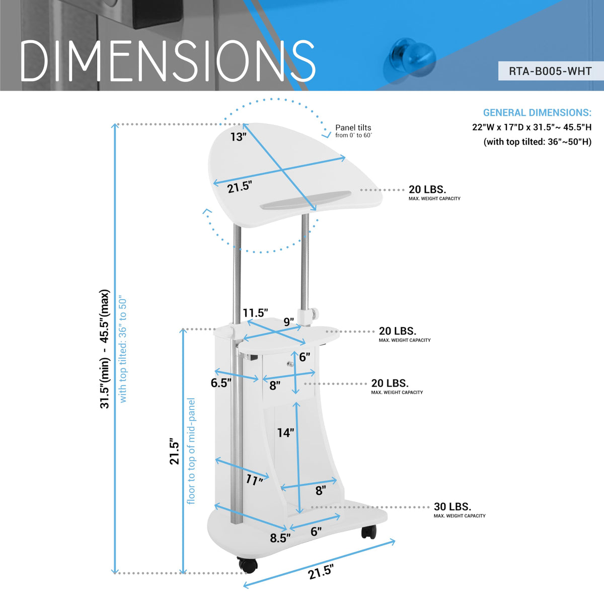 Upgrade your workspace with this versatile rolling laptop cart and experience the benefits of a stand-up desk that is as stylish as it is functional. Enhance your productivity and comfort with the Techni Mobili Deluxe Sit-to-Stand Rolling Laptop Cart today!