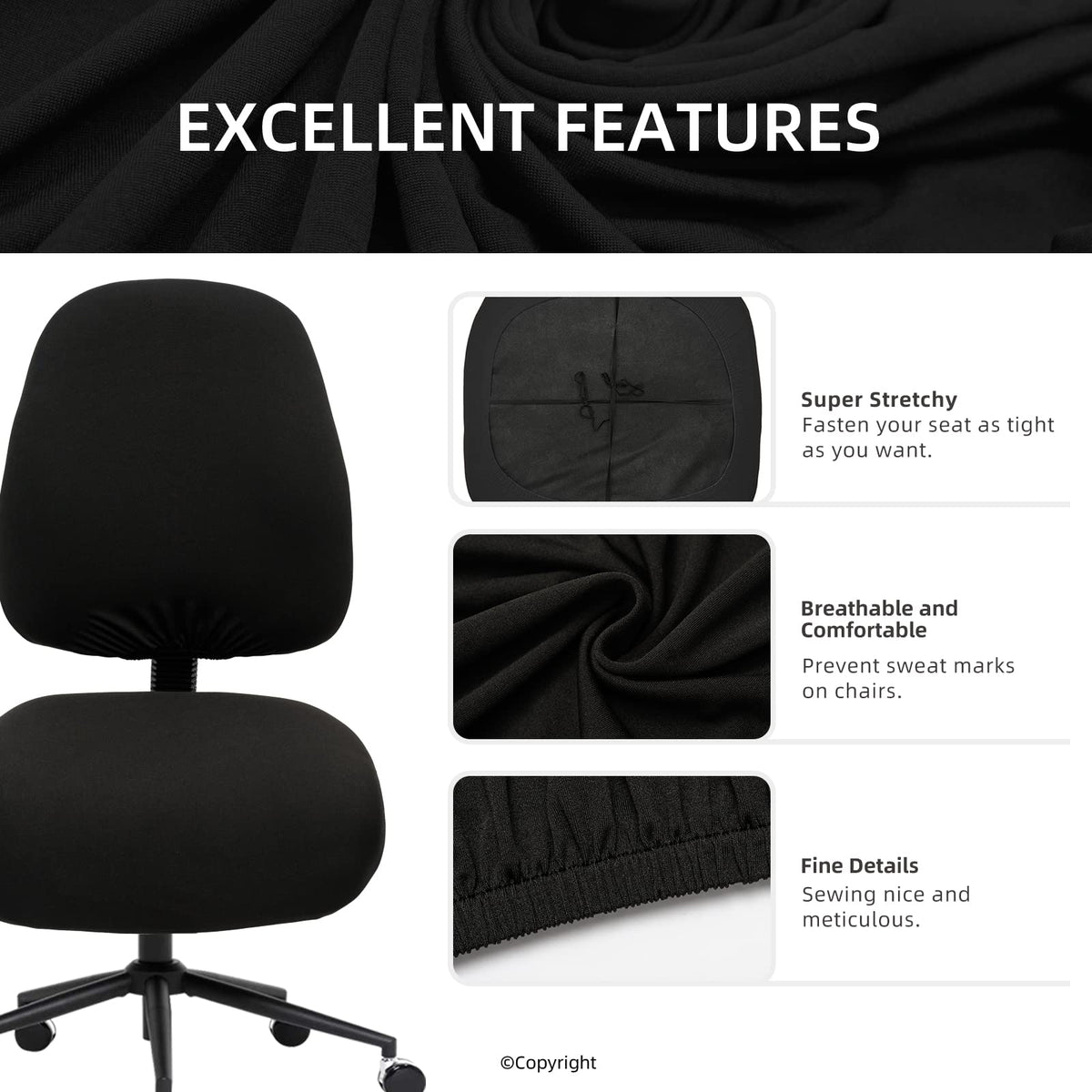 Water-Resistant Stretchable Computer Chair Covers - Washable Rotating Backrest And Seat Protectors For Pets - Black