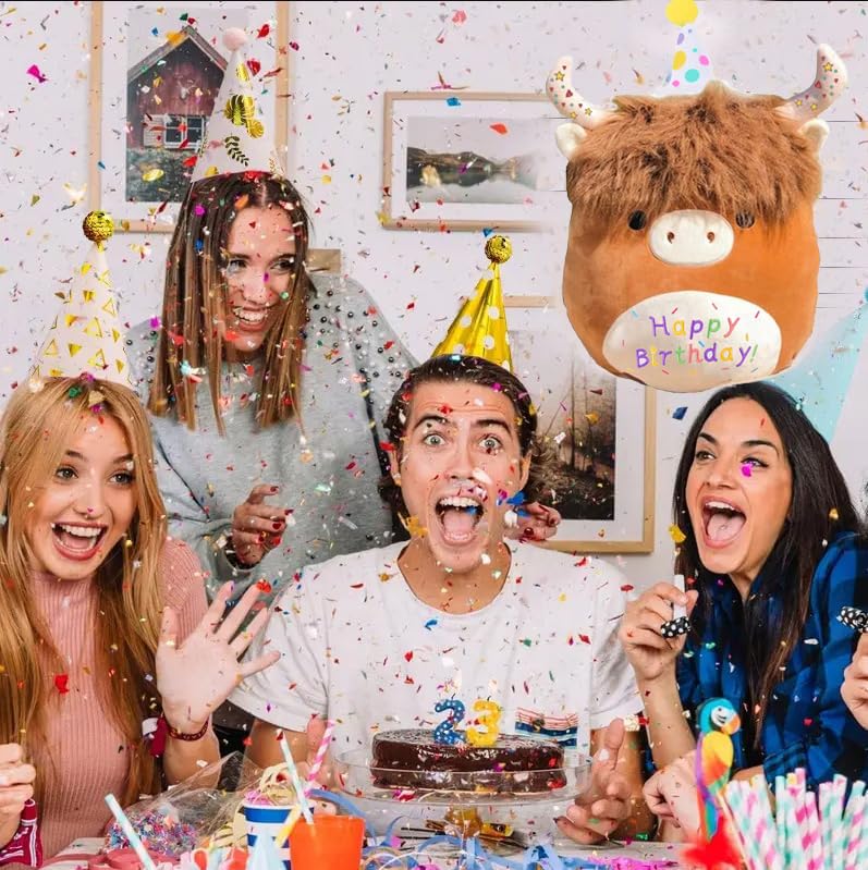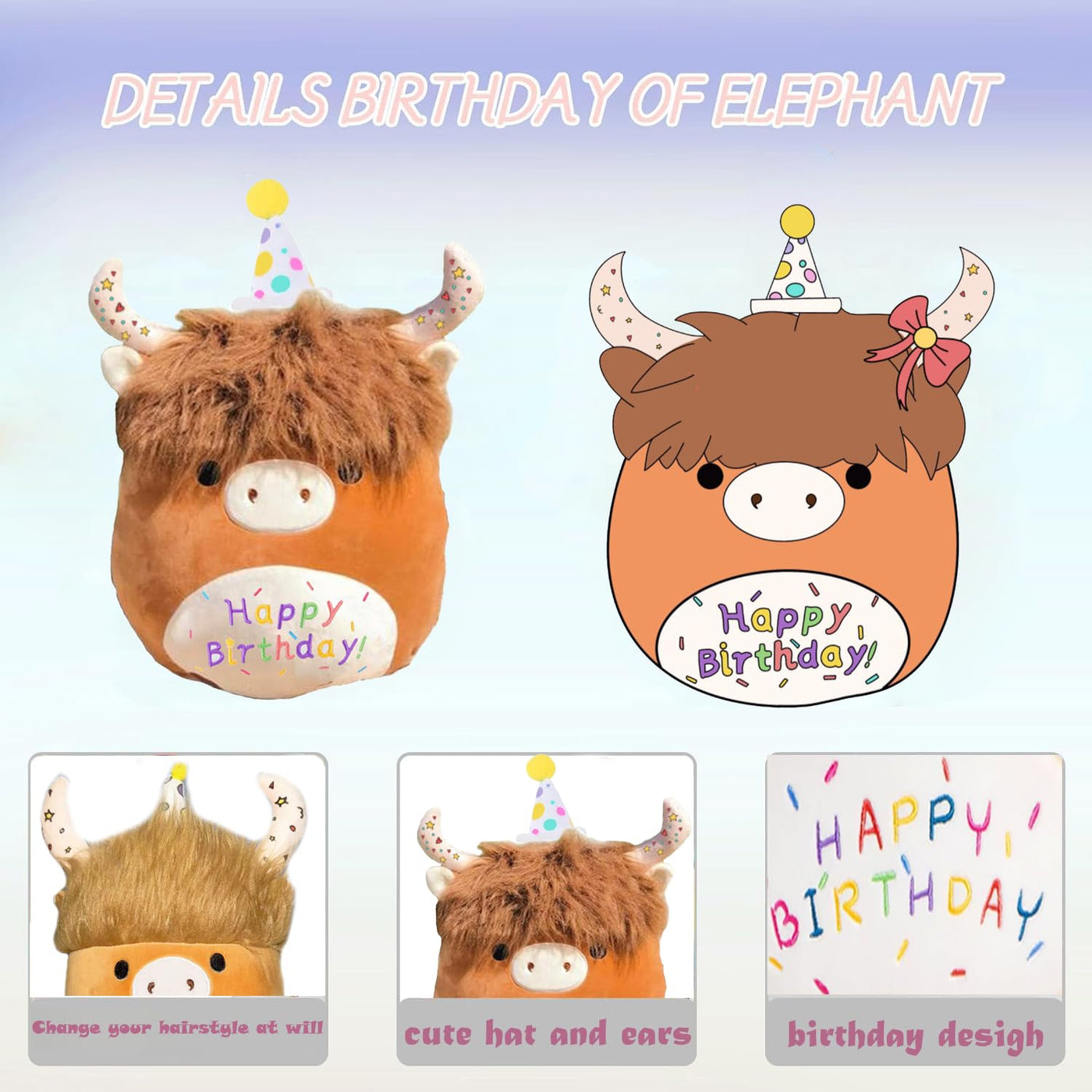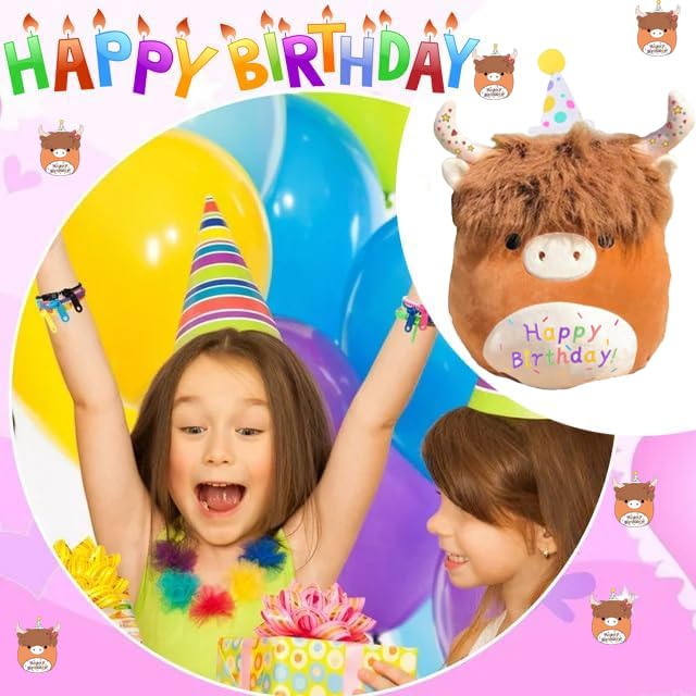 Q: Is the Highland Cow Plush suitable for all ages?A: Yes, the Happy Birthday Highland Cow Plush is designed to appeal to a wide range of ages, making it a versatile gift for children, friends, and family members alike.
