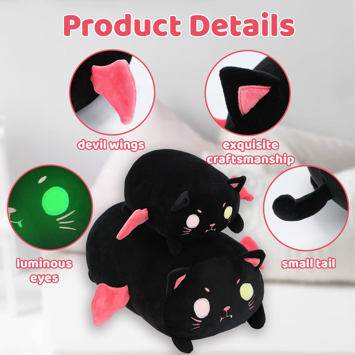 Aixini Cute Black Cat Plush Pillow 8 Black Kitten Stuffed Animal With Luminous Eyes, Fat Soft Kawaii Plushies Hugging Plush S