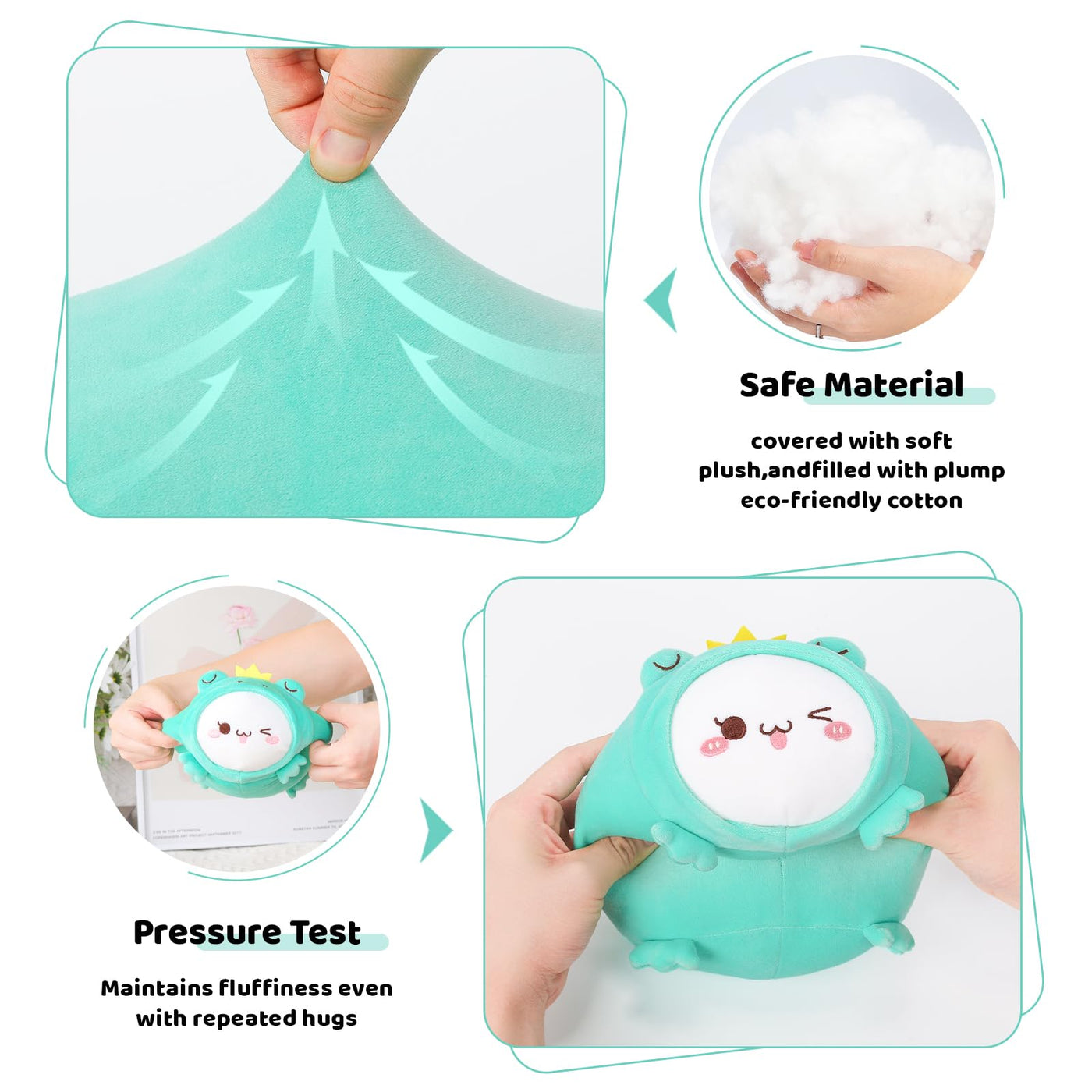 Q: Is the plush pillow machine washable?A: Yes, the AIXINI Cute Cat Frog Plush Pillow is made from high-quality, safe fabric and is machine washable, making it easy to clean.