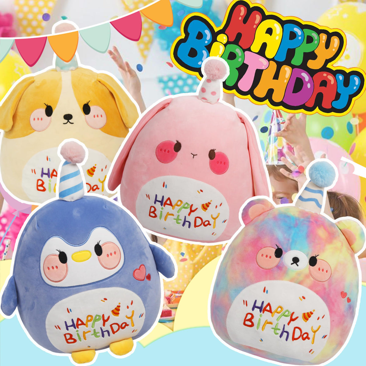 Arelux 18In Cute Penguin Plush Soft Penguin Stuffed Animal Birthday Pillow Plushie Toy Happy Birthday Party Decoration Plushies