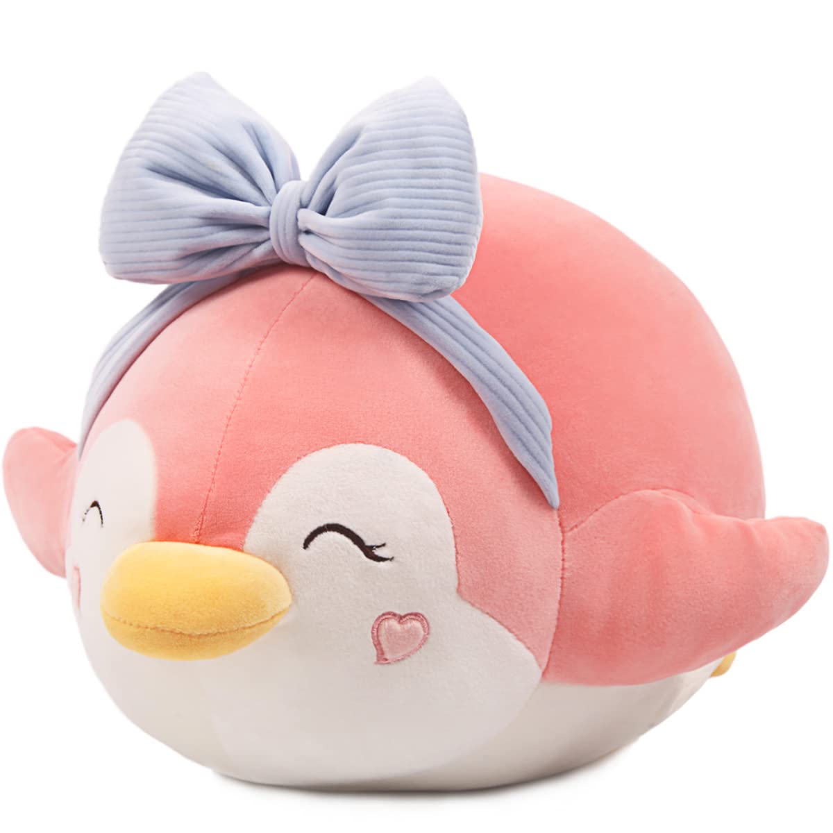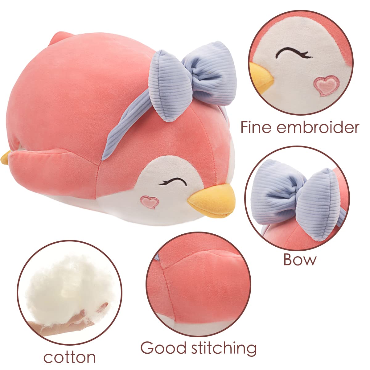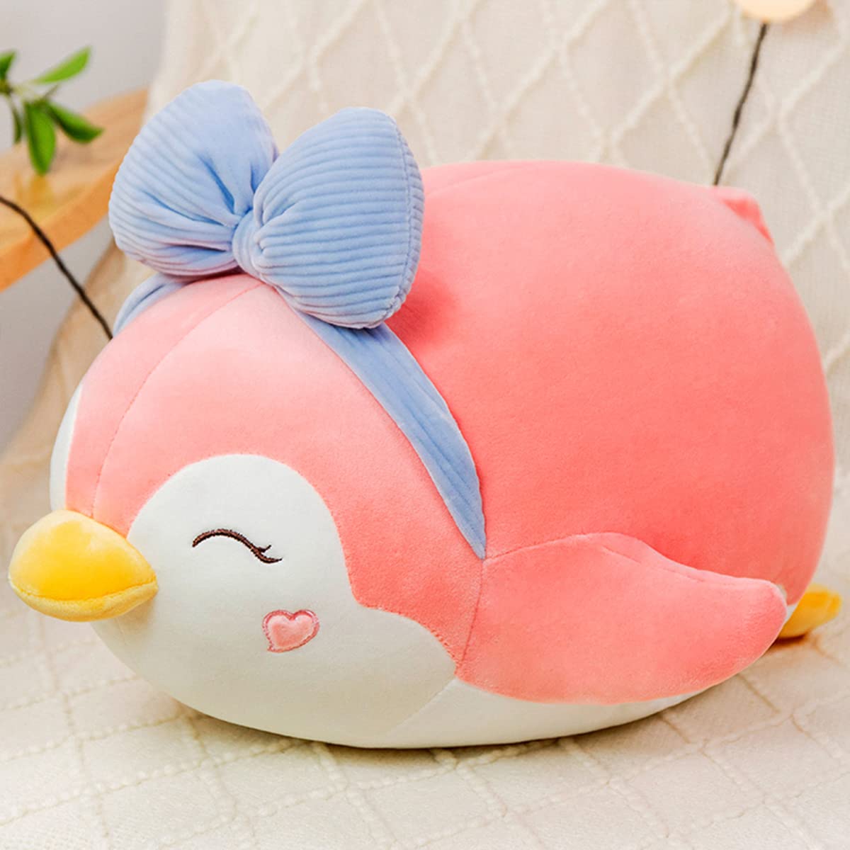 Arelux Pink Penguin Plush Pillow Stuffed Animal Snuggly Pillow Cute Plush Toy Snuggle Buddy Plushie Kawaii Soft Hugging Pillow F