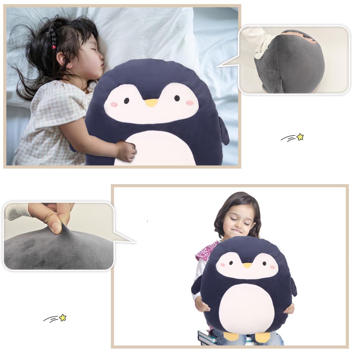Q: Is this plush pillow suitable for children?A: Yes, the ARELUX Soft Penguin Plush Cuddle Pillow is designed to be a safe and cuddly companion for children. Its cute design and soft materials make it an ideal playmate.