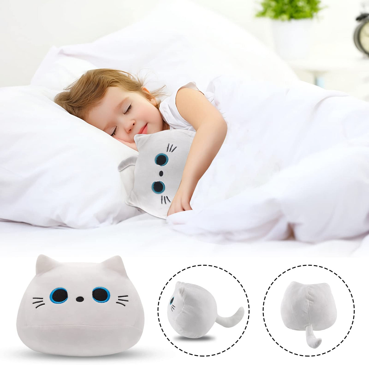 Q: Is the cat plush toy suitable for children?A: Yes, this plush cat toy is designed with kids in mind. Its soft texture and cute design make it a great companion for children, helping them feel relaxed and sleep better.