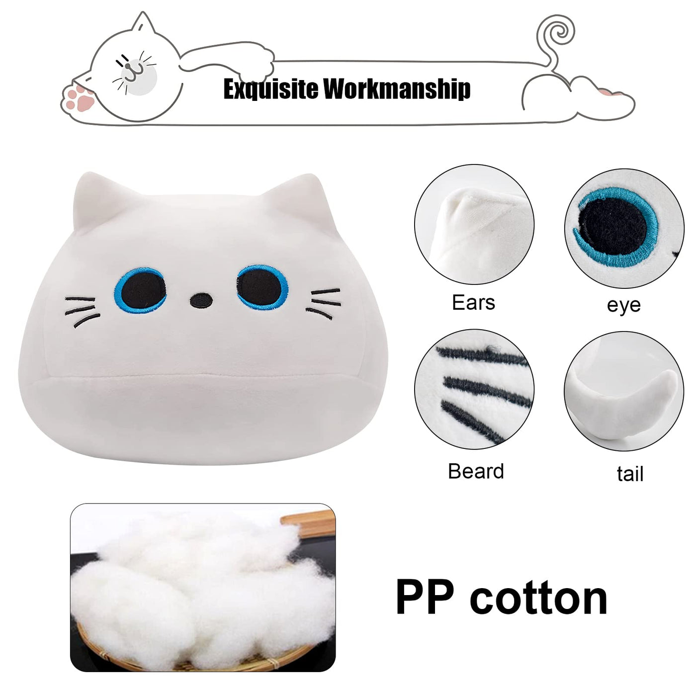 Auderhine 10' Cute White Cat Plush Toys, Soft Cat Pillow Squishy Plushies, Cat Stuffed Animals Kawaii Plush Toys Home Decoratio