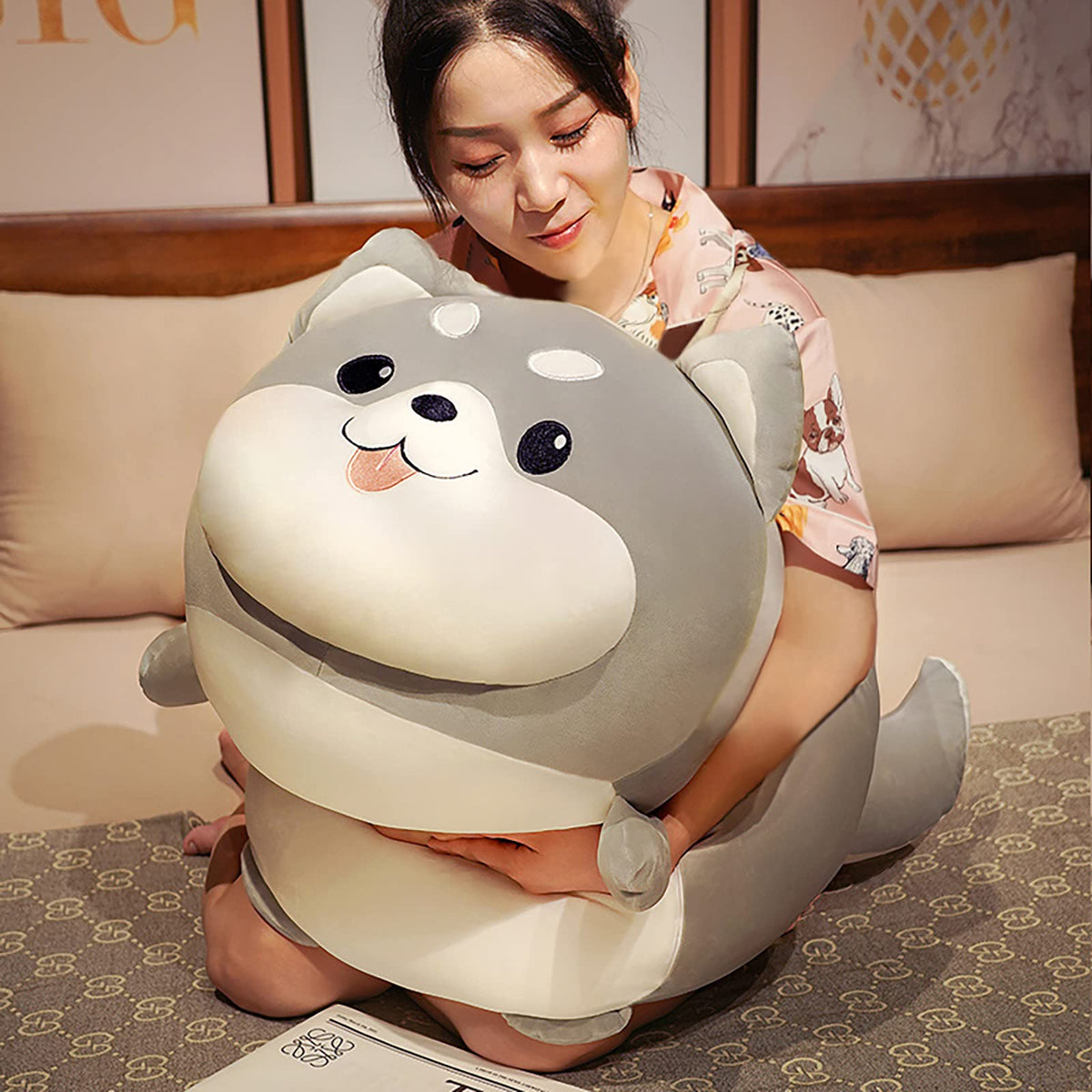 Q: What is the size of the Husky stuffed animal throw pillow?A: The Husky stuffed animal throw pillow measures approximately 20 inches in length, making it a perfect size for hugging and cuddling.