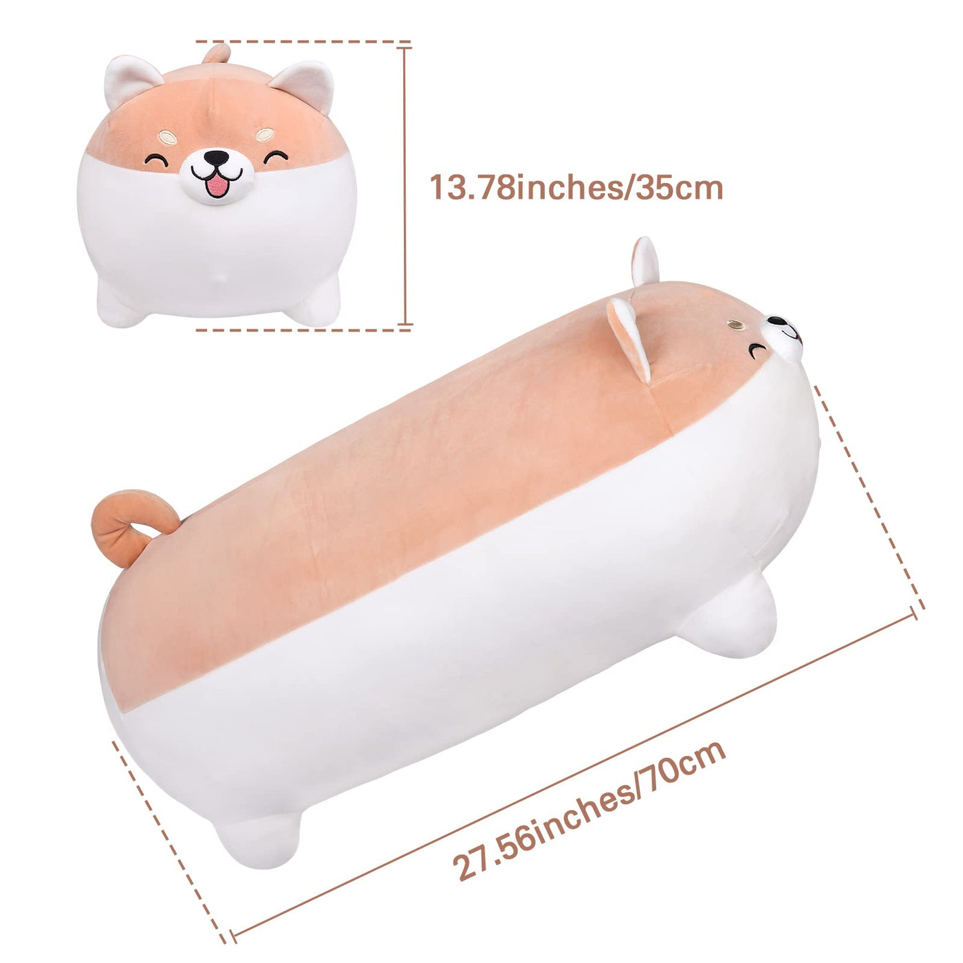 Auspicious Beginning 27.6' Shiba Inu Plush Toy Anime Smiling Corgi Kawaii Long Plush Dog Soft Hugging Body Pillow, Big Stuffed