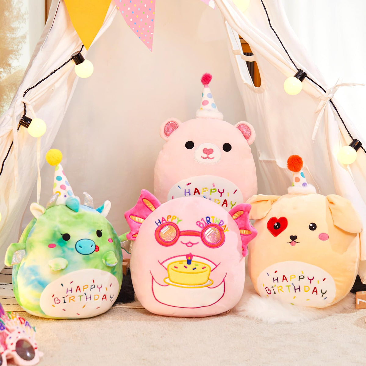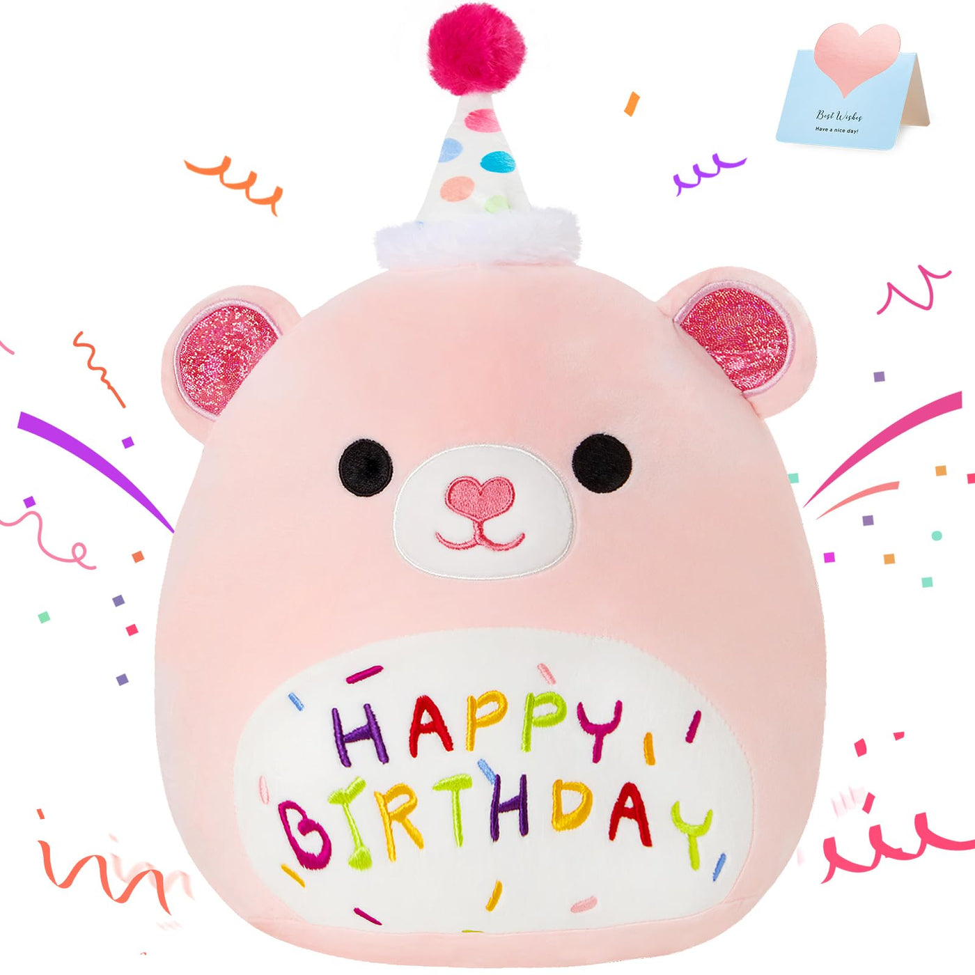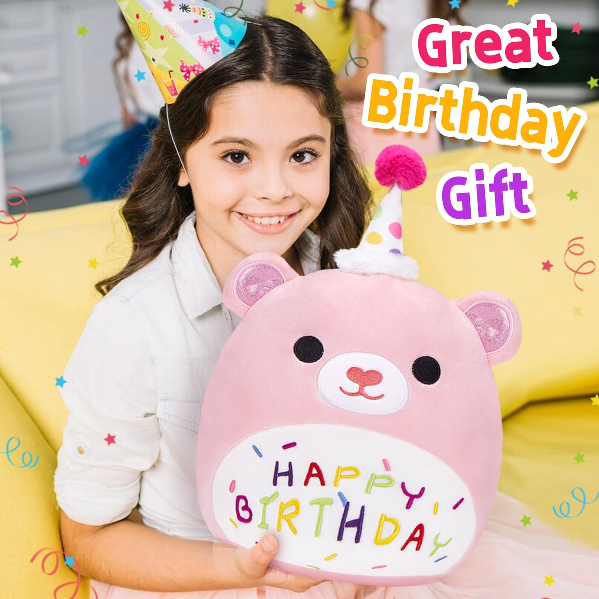 Q: How should I care for the BSTAOFY plush pillow?A: The BSTAOFY Pink Happy Birthday Teddy Bear Plush Pillow is machine washable, ensuring easy maintenance. To keep it looking its best, wash it on a gentle cycle and air dry. Avoid using bleach to prevent damage.