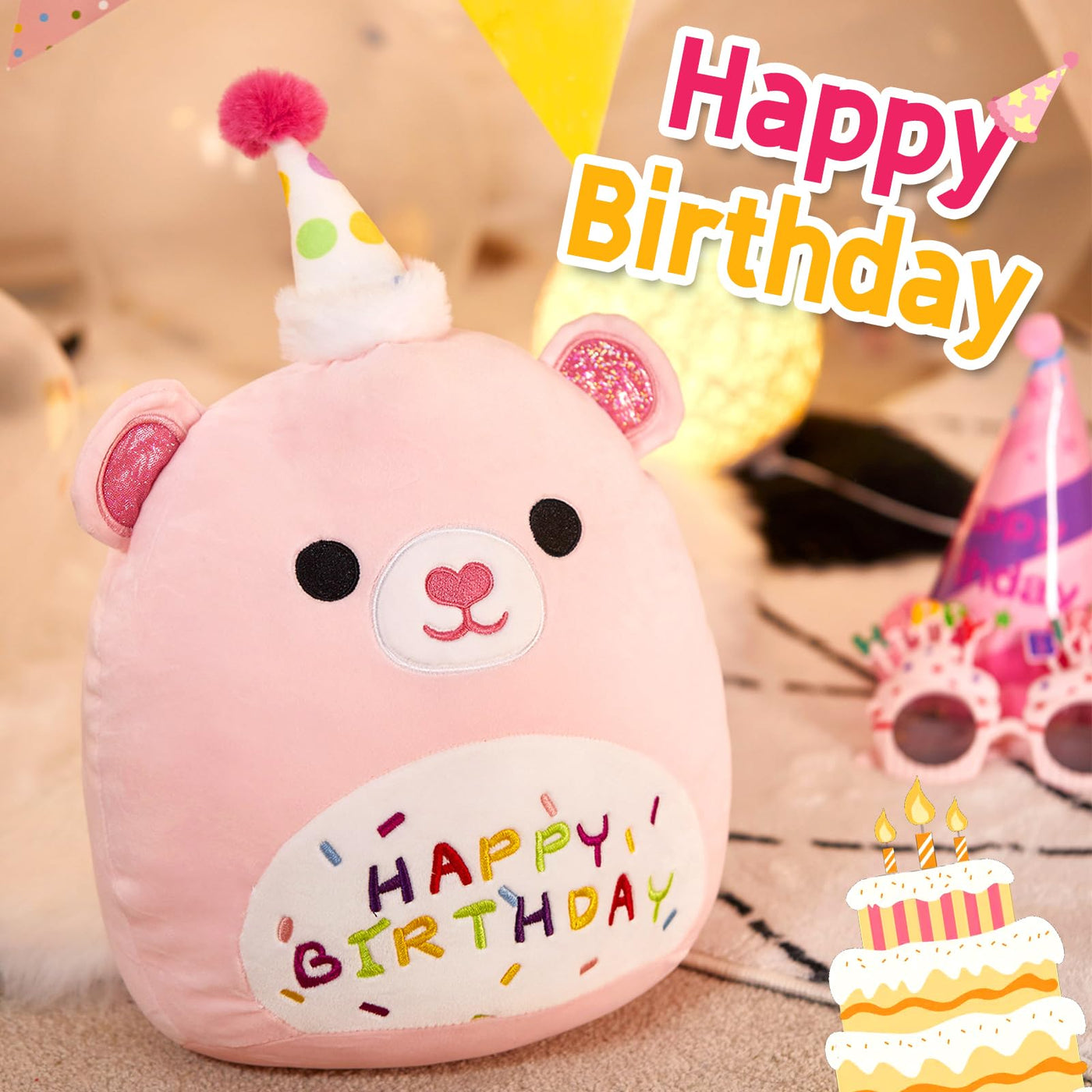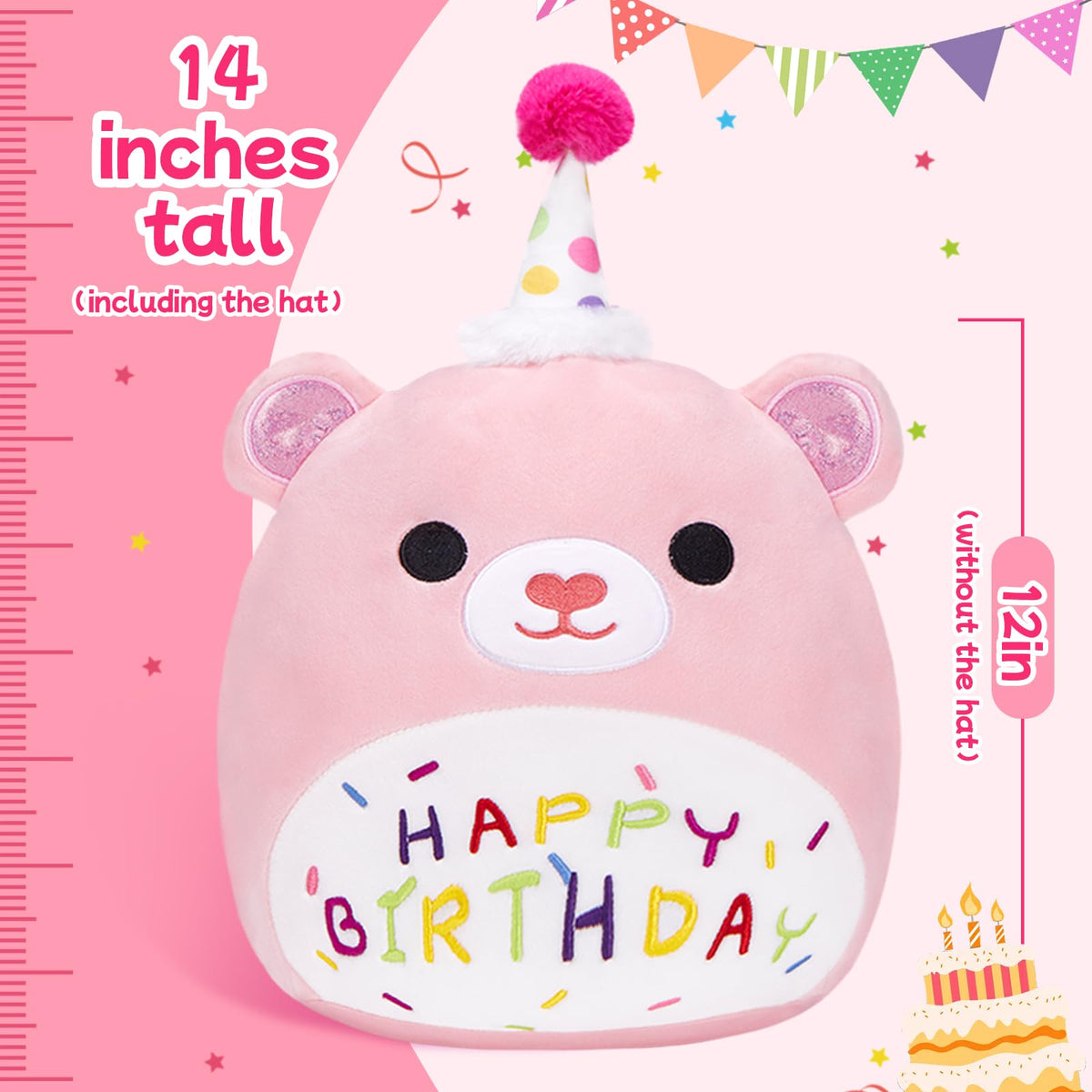 Bstaofy 14' Pink Happy Birthday Teddy Bear Soft Plush Pillow Cute Birthday Bear Stuffed Animal For Toddler Girls, Birthday Part