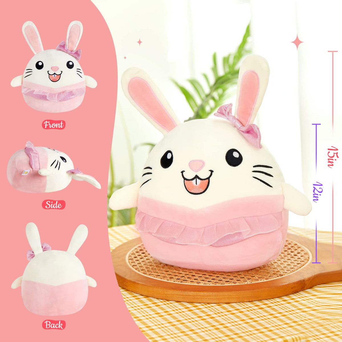 Q: What is the size of the BSTAOFY Pink Ballerina Bunny Plush Pillow?A: The BSTAOFY Pink Ballerina Bunny Plush Pillow measures approximately 12 inches tall, making it the perfect size for cuddling and embracing.