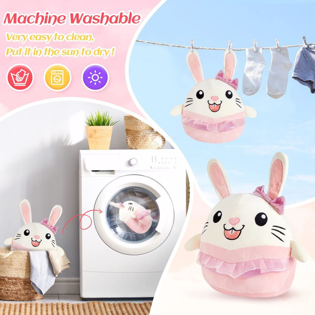 Q: Is the plush pillow easy to clean?A: Yes, the BSTAOFY Pink Ballerina Bunny Plush Pillow is made from high-quality fabric and is both hand and machine washable, ensuring easy maintenance and lasting enjoyment.