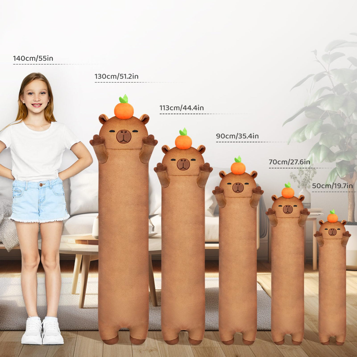 Q: What makes this capybara plush pillow a unique gift option?A: With its adorable design featuring a charming expression and long, snuggly body, the Long Capybara Plush Body Pillow is not just a stuffed toy but a thoughtful gift for occasions like birthdays, Christmas, and Valentine's Day.
