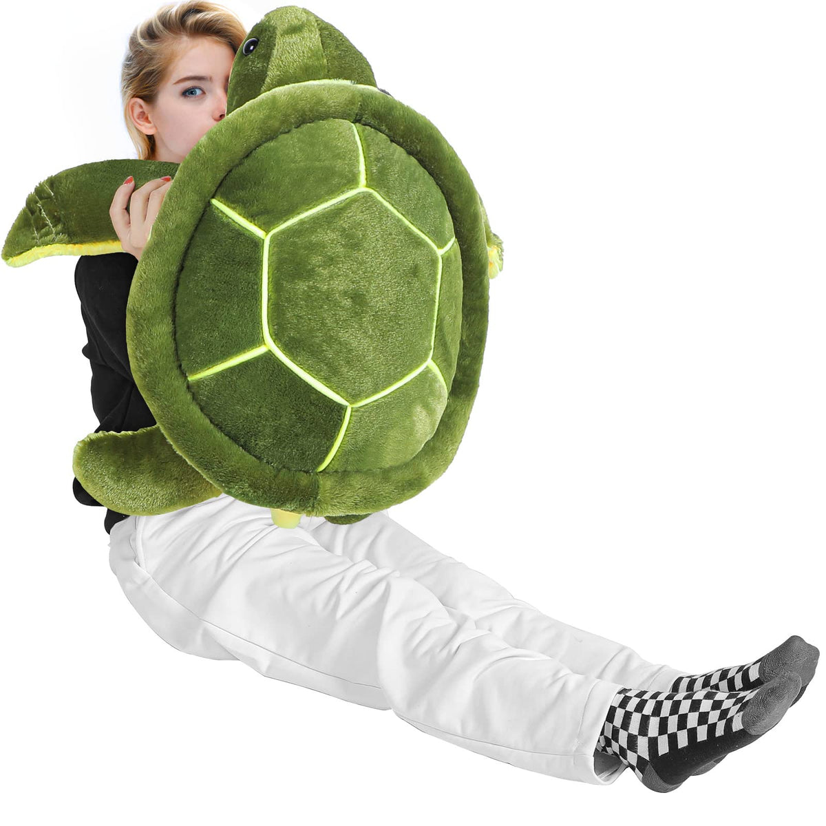Q: Can this turtle stuffed animal be used as a decorative item?A: Absolutely! The large plush turtle not only serves as a cuddly toy but also adds a charming touch to your room decor, bringing a lively and nature-inspired vibe to your space.