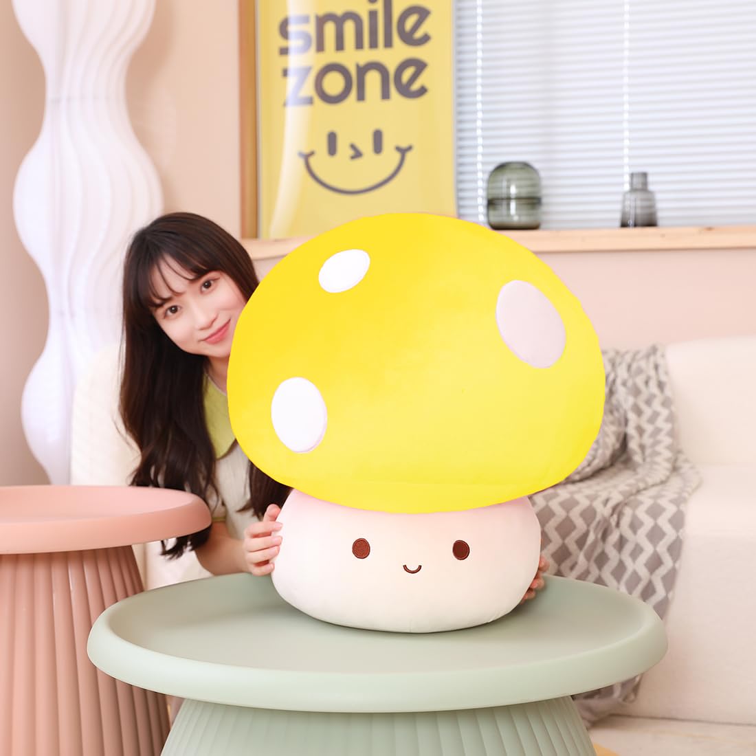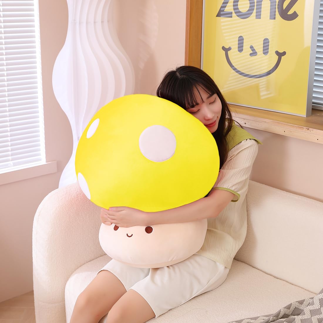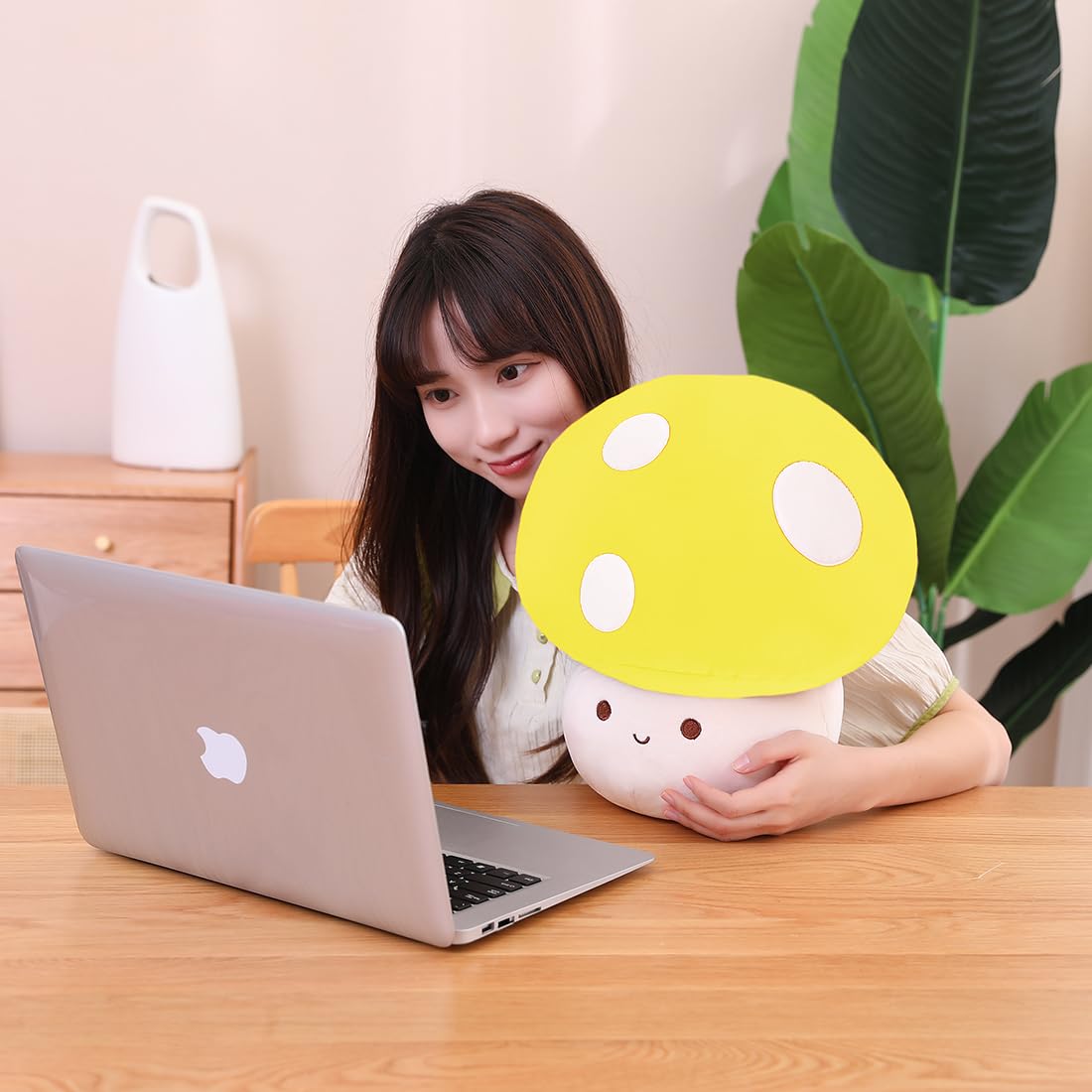 Cute Mushroom Plush Toy, Yellow Mushroom Plush Pillow 3D Soft Mushroom Plushie, Mushroom Hugging Plush Pillow Gift For Girls Kid