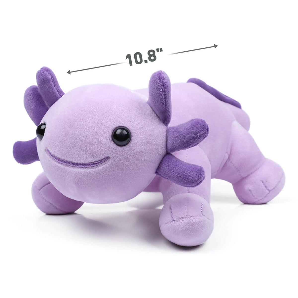 Q: What are the dimensions of the Axolotl Plush Toy?A: The Axolotl Plush Toy measures approximately 10.8 inches (27.5 cm) in length, making it a lightweight and portable plush toy that can easily be carried around.