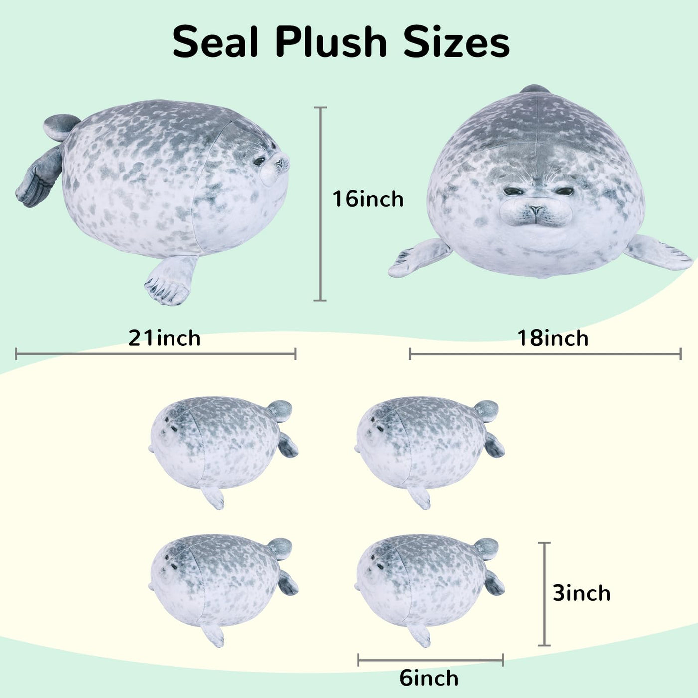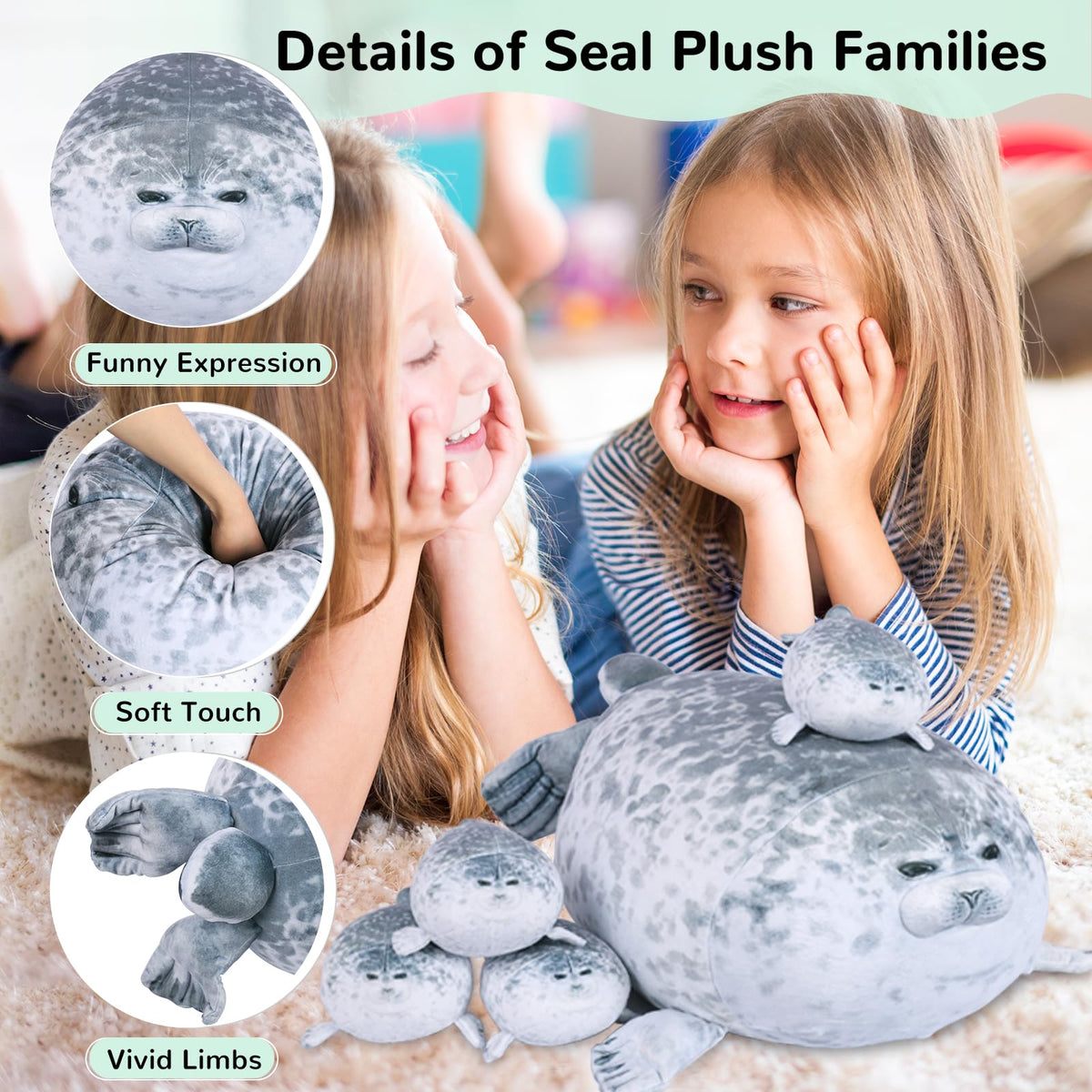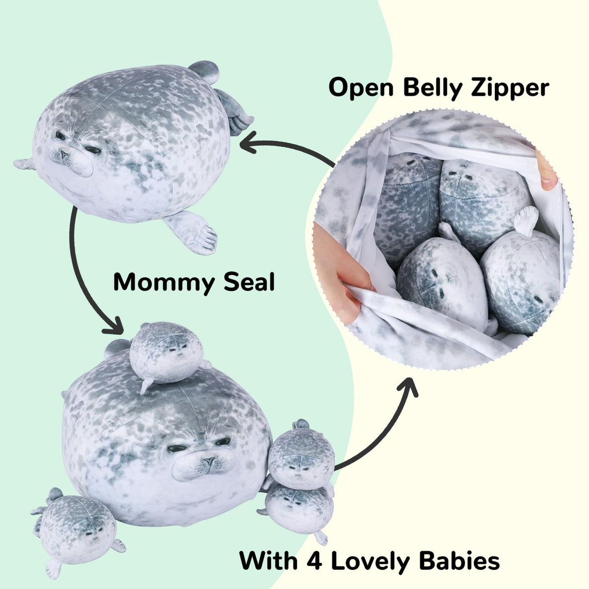 Etaoline Chubby Blob Seal Pillow Cute Seal Plush Toy Cotton Stuffed Animals With 4 Baby Seal Plushies