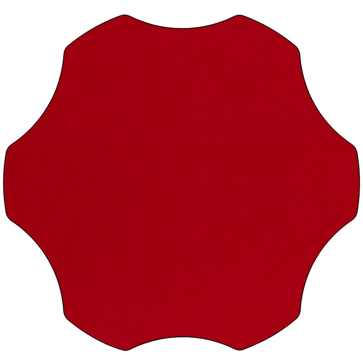 This Flower Activity Table is a must have for daycare, preschool and early childhood development centers. Enhance collaborative learning by grouping tables together. It will accommodate children up to age 7.It features a 60" thermal fused scratch, stain and warp resistant laminate top with a black edge band and 16 gauge tubular steel legs for increased stability. The top incorporates a protective underside backing sheet to prevent moisture absorption and warping. An attractive black powder coated finish protects the upper legs from scratches and height adjustable chrome lower legs give you the flexibility to raise or lower the table a full 9" in 1" increments. Self-leveling nylon floor glides keep the table from wobbling and protect your floor by sliding smoothly when you need to move it.Perfect for craft time, snack time and party time, this easy to clean table is just the right size for small children.