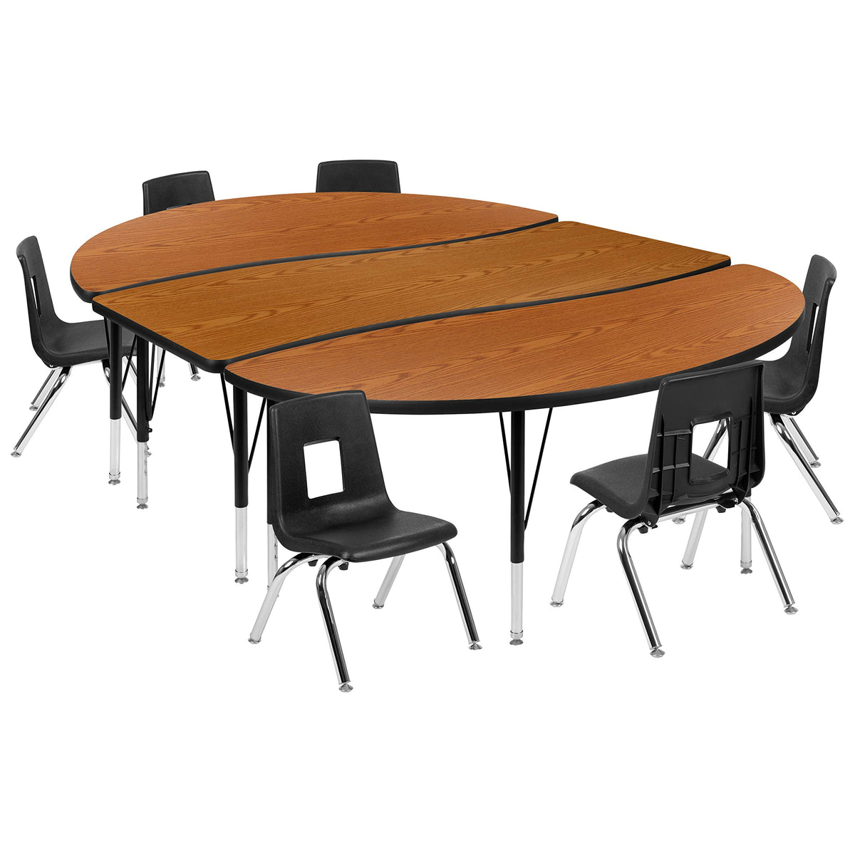 Flash Furniture 86' Oval Wave Collaborative Laminate Activity Table Set With 12' Student Stack Chairs, Oak/Black