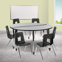 Flash Furniture Mobile 60' Circle Wave Collaborative Laminate Activity Table Set With 18' Student Stack Chairs, Grey/Black