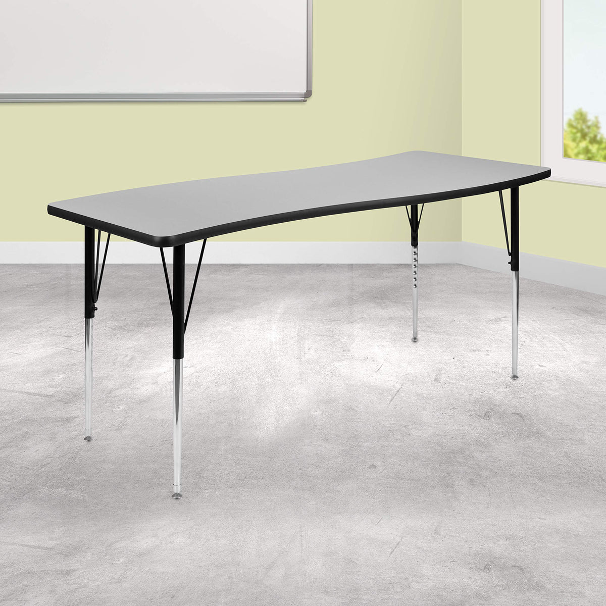 Flash Furniture Wren 26'W X 60'L Rectangular Wave Flexible Collaborative Grey Thermal Laminate Activity Table - Standard Height Adjustable Legs