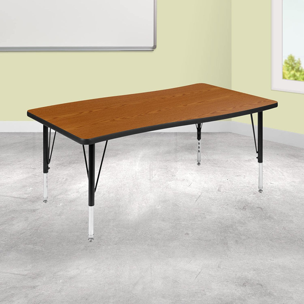 Flash Furniture Wren 28'W X 47.5'L Rectangular Wave Flexible Collaborative Oak Thermal Laminate Activity Table - Height Adjustable Short Legs