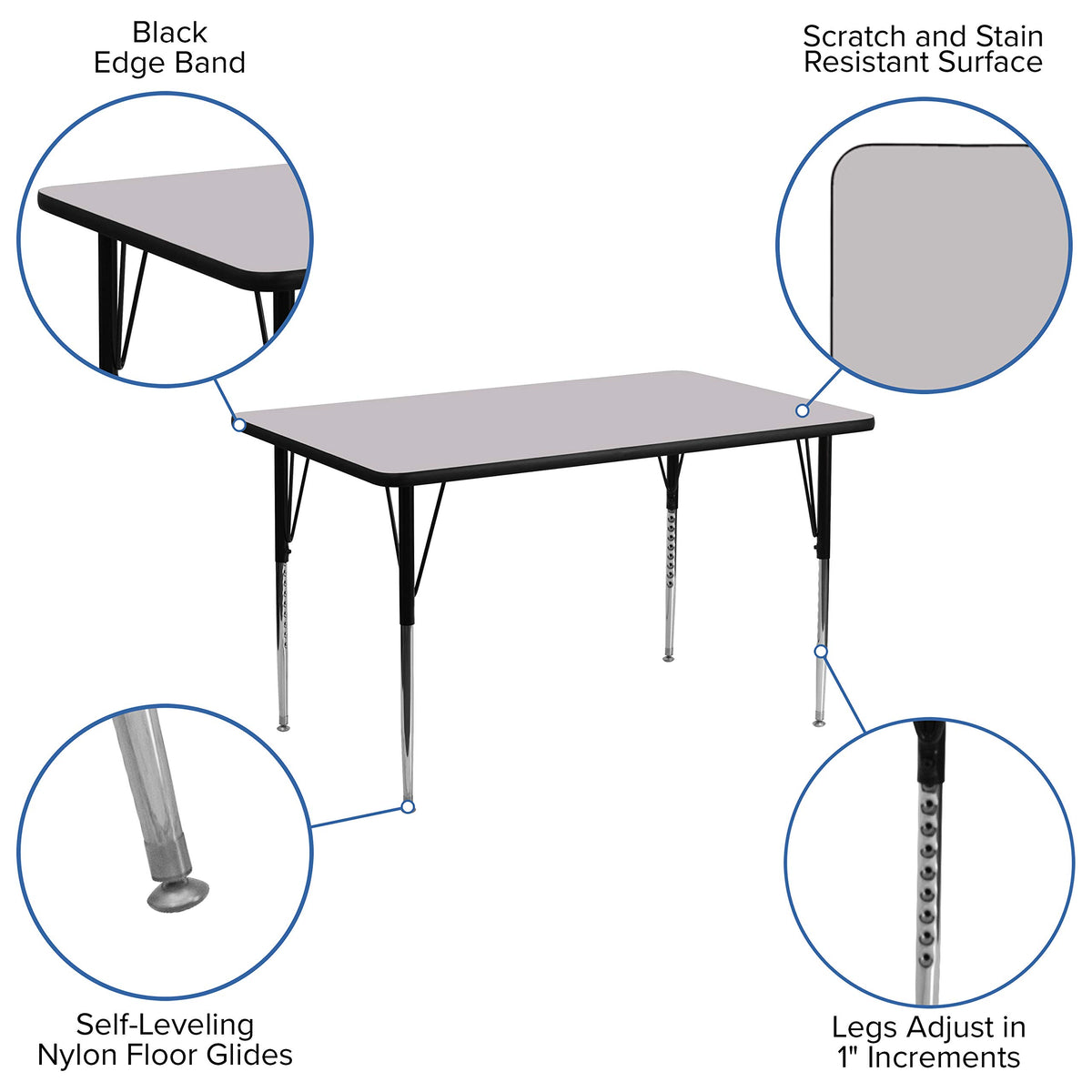 Flash Furniture Wren 30''W x 48''L Rectangular Grey Thermal Laminate Activity Table - Standard Height Adjustable Legs