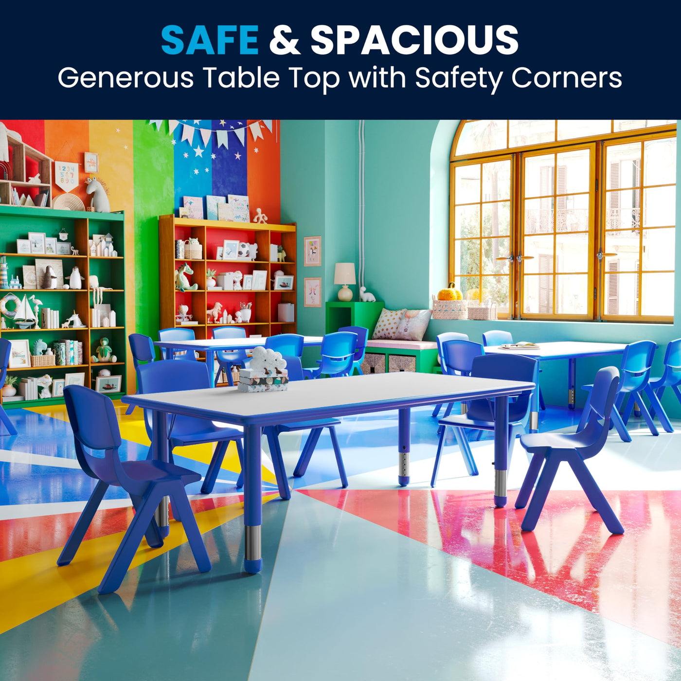 Flash Furniture Wren Adjustable Classroom Activity Table For School And Home, Plastic Activity Table For Kids, 23.625' W X 47.25' L, Gray/Blue