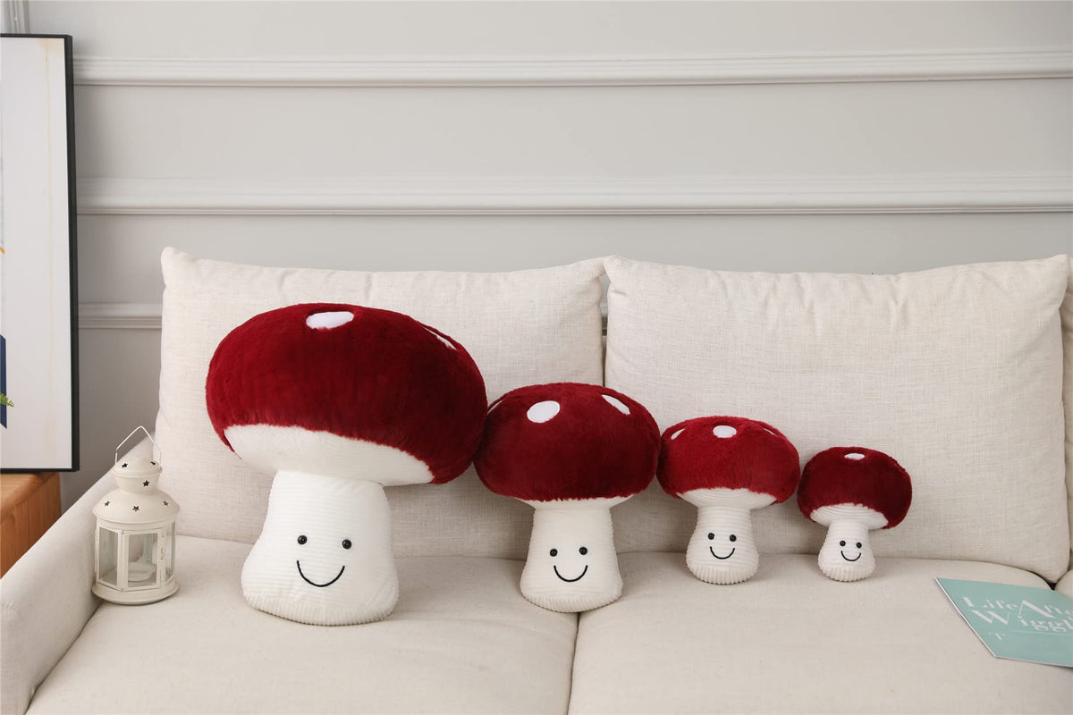 Q: What sizes are available for the Mushroom Pillow?A: This Mushroom Pillow is available in multiple sizes: 8 inches (20 CM), 10 inches (28 CM), 15.7 inches (40 CM), and 22 inches (55 CM). Please note that there may be slight size variations.