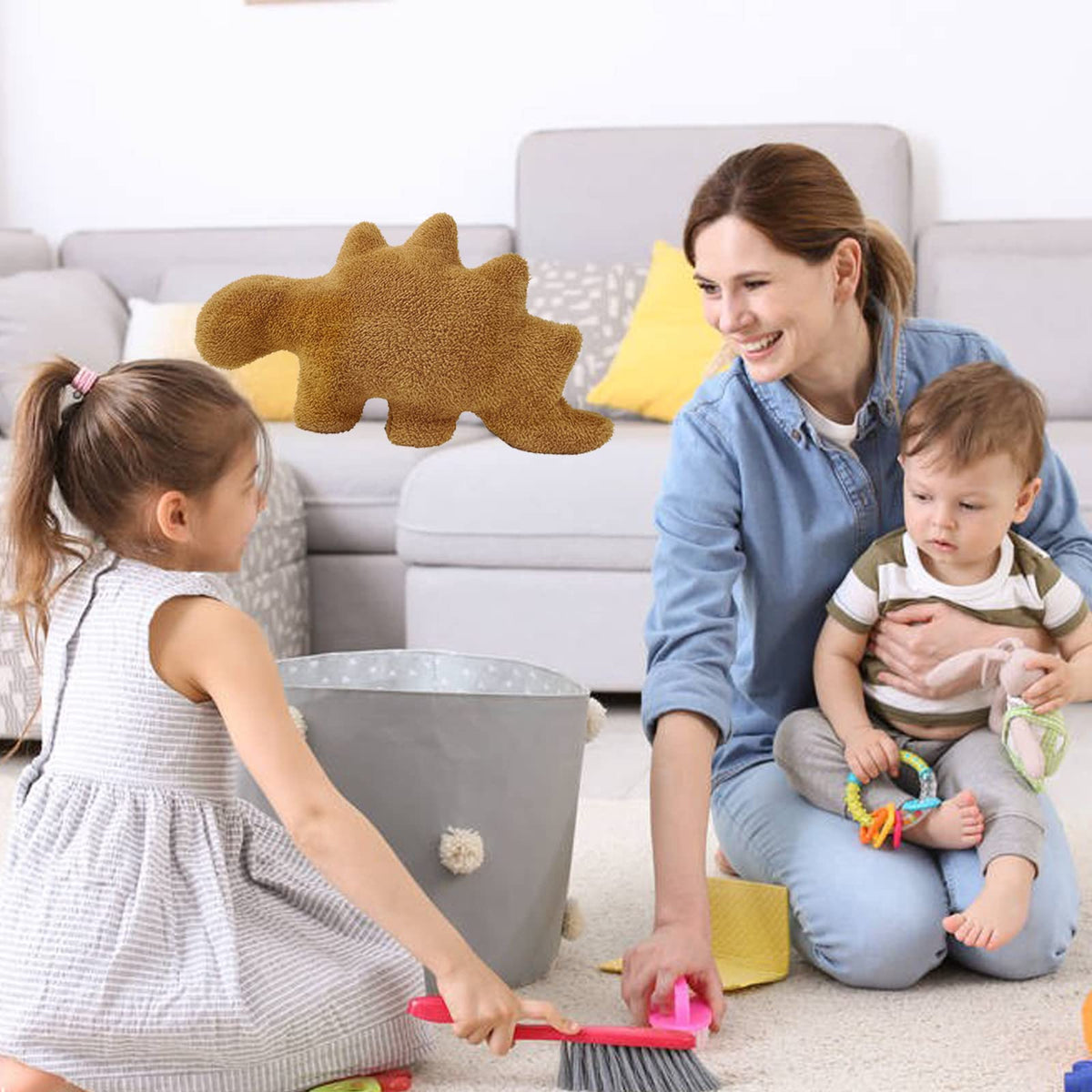Q: How can I use the Isaacalyx Dino Nugget Pillow in my home decor?A: The large dino nugget pillow can be used as a fun accent in the living room, as a cozy cushion for cuddling, or as a playful decoration for dinosaur-themed parties.