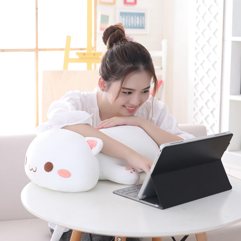 Jensquaify Cat Plush Hugging Pillow, Soft Cat Stuffed Animals Kawaii Kitten Plush Toy Gifts For Kids (White Round Eyes, 19.6')