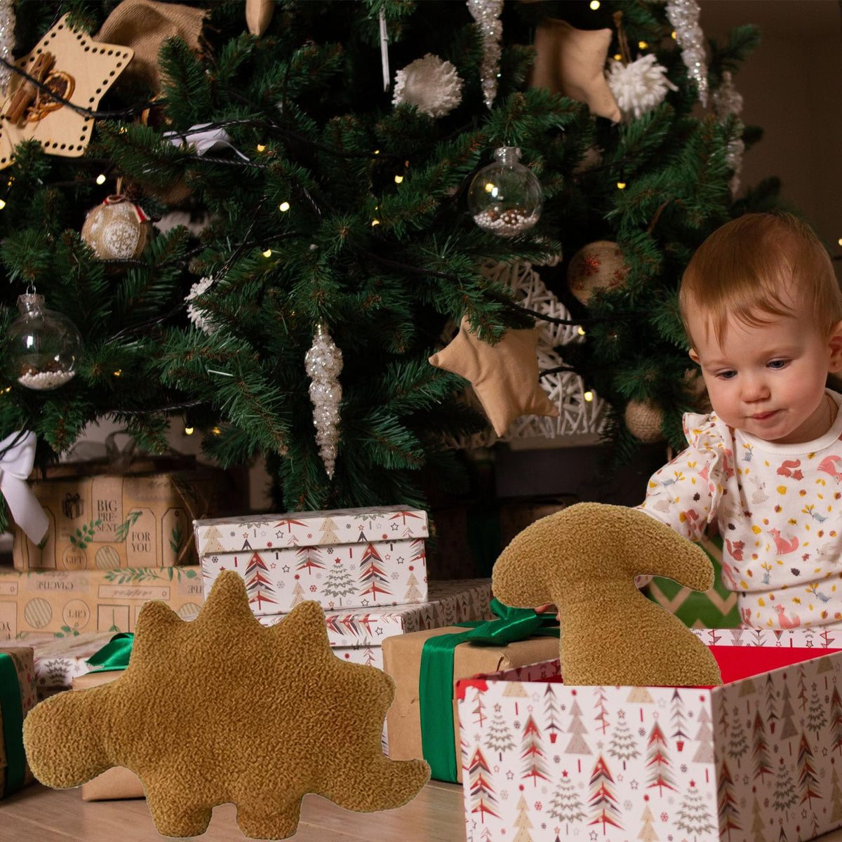 Our Dinosaur Chicken Nugget Pillow Comes From The Chicken Nuggets In Life,Give It A Vivid Form And Create It Into A Cute Animal Plush Pillow. It Is A Very Cute Little Dinosaur. Soft And High Quality Plush Material Will Bring Your Children Happiness. When Children Hug It, They Will Also Be Attracted By The Color Of The Chicken Nuggets. We Have 3 Different Styles To Choose From, Stegosaurus, Tyrannosaurus And Tanystropheus. By The Combination Of Different Dinosaurs Into Each Different Dino Nuggets Pillow Plush Will Bring You Endless Fun.
