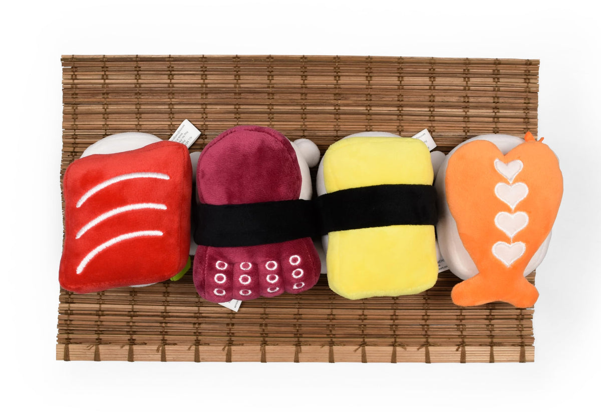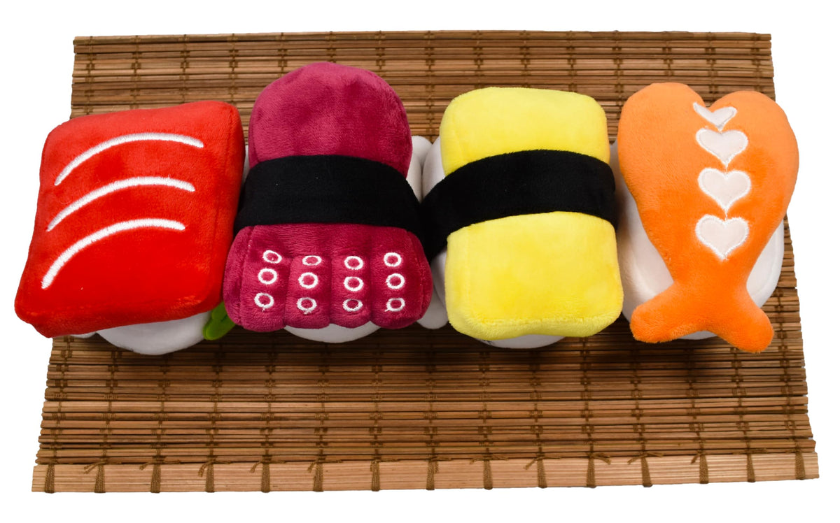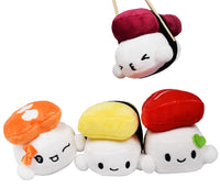 Q: What materials are used in the construction of this plush sushi?A: This plush sushi is crafted from 100% hypoallergenic polyester, ensuring it is soft to the touch and safe for all ages, while also being durable for both cuddling and play.
