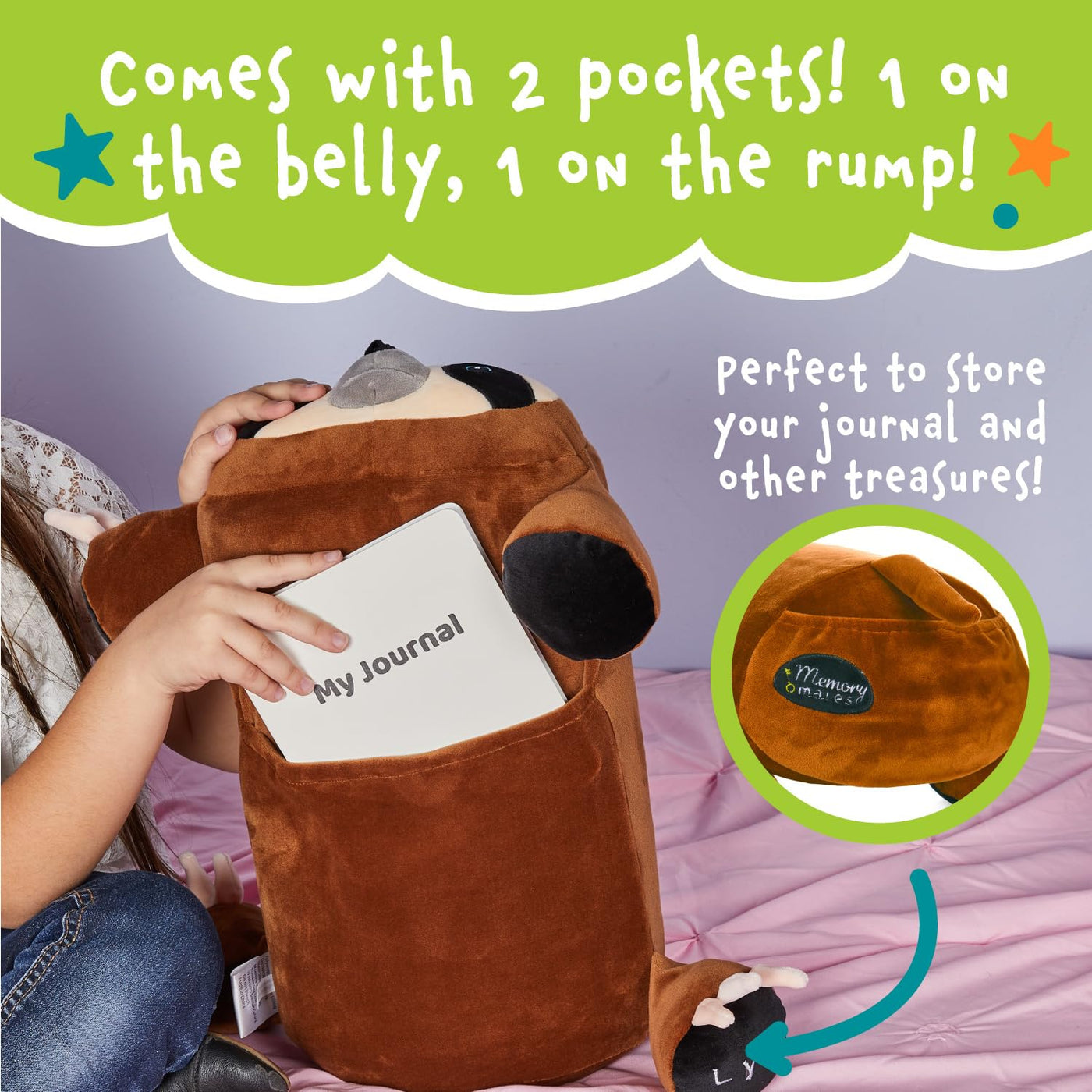 Add This Stuffed Animal And Journal To Your Collection! With Its Ultra Plush Design And Pockets For Holding Toys And The Included Journal, This Memory Mate Is Ready For Play. Memory Mates Are The Perfect Travel Companion For Nights Away From Home. They Give Kids A Place To Rest Their Heads, Pockets To Store Toys In, And A Comforting Pal For Play. This Stuffed Animal Memory Mate Is Made With Memory Foam Which Makes It Extra Huggable For Cuddling And Super Comfortable As A Pillow For Naptime. Write And Draw To Your Hearts Content In The Diary, Then Store It Away In The Plushs Convenient Back Pocket When Its Time To Put The Pen Down And Go To Bed. Girls And Boys Love Memory Mates For Their Friendly Faces And Cozy Material. Theyre Wonderful For Imaginative Play And For Bedtime Snuggling. Memory Mates Were Made For Kids But They'Re Enjoyed By Everyone!