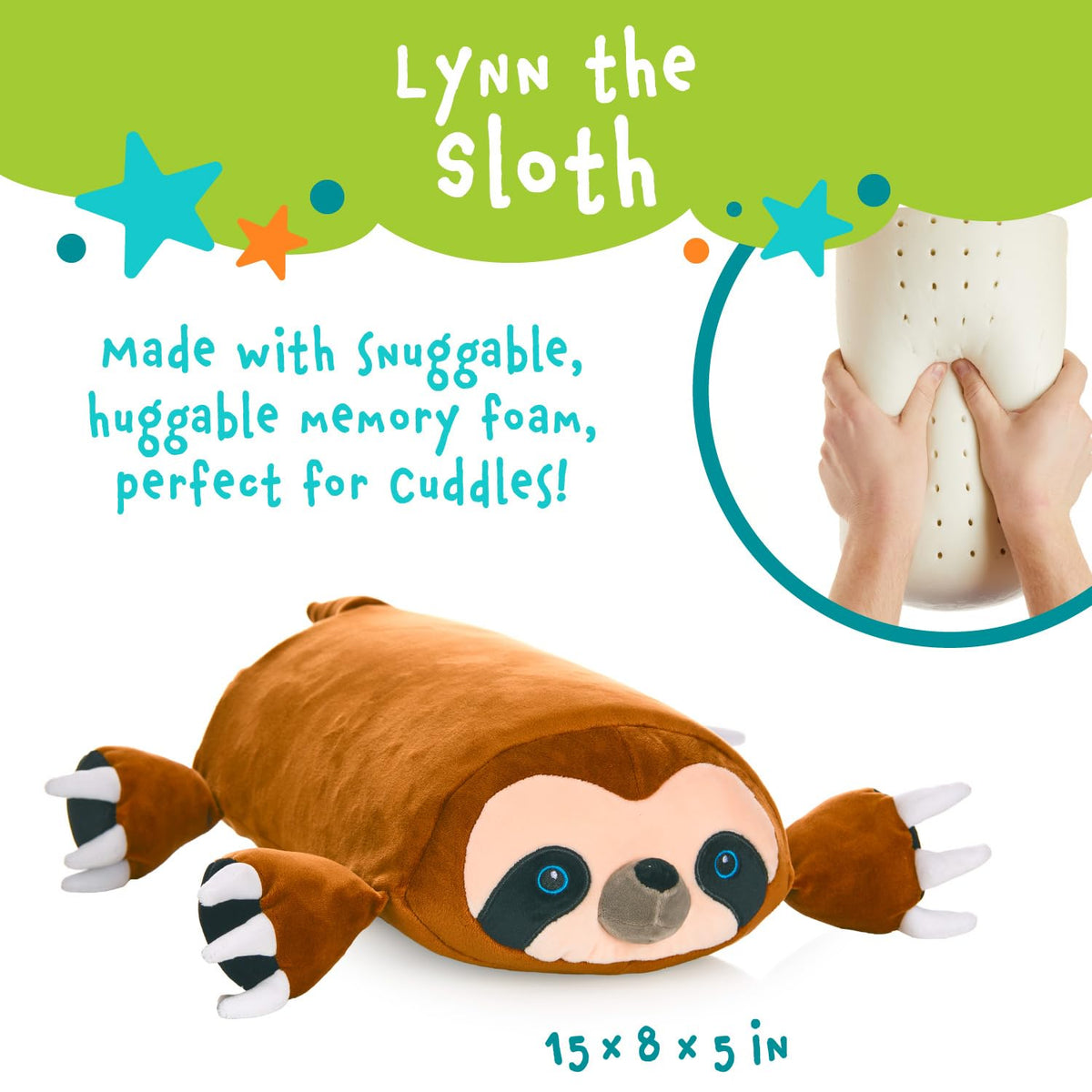 Q: What materials are used in the MEMORY MATES Cuddly Memory Foam Pillow?A: The MEMORY MATES pillow is made from ultra-soft memory foam and plush fabric, ensuring it is huggable, comfortable, and perfect for naptime or playtime.