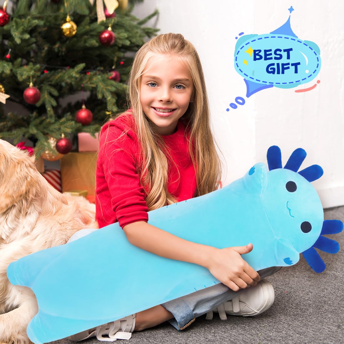 Miaohaha Plush Axolotl Toy 43.3In Stuffed Animal Axolotl Toy Pillow Body Pillow Gift For Kids And Girls(Blue,110Cm/43.3In)