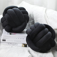 Q: What material is used for the knot ball pillows?A: The knot ball pillows are made of soft plush fabric filled with cotton, providing a comfortable and cozy feel when held.