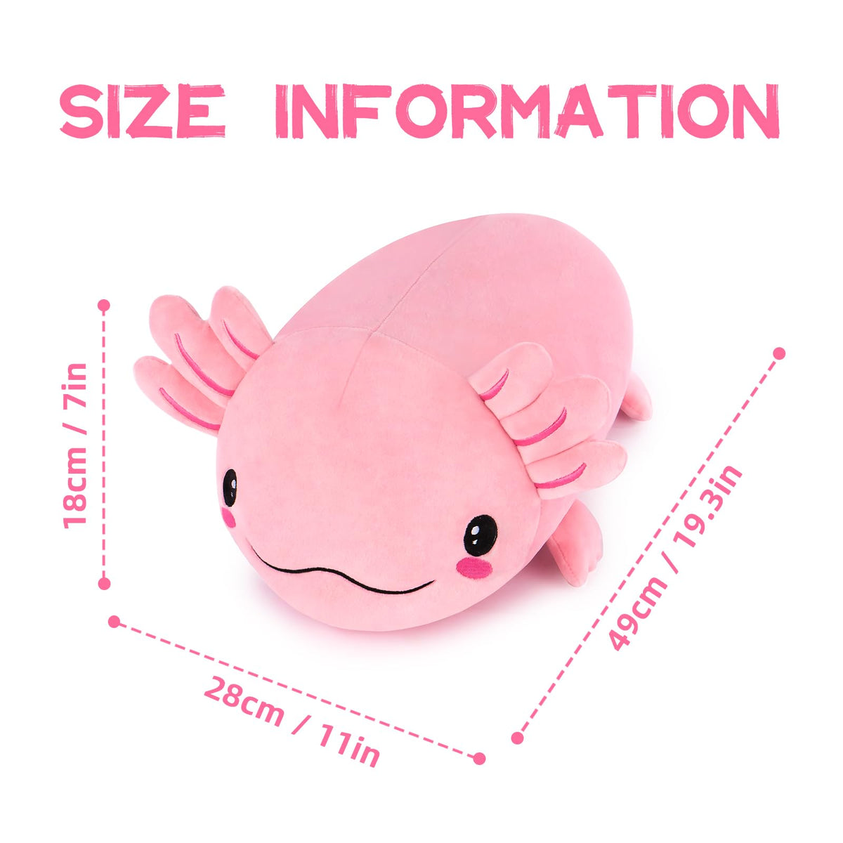 Niuniu Daddy 19In Axolotl Stuffed Animal Not Weighted - Kawaii Pink Axolotl Plush Toy For Kids, Squishy Soft Cute Axolotl Pillow