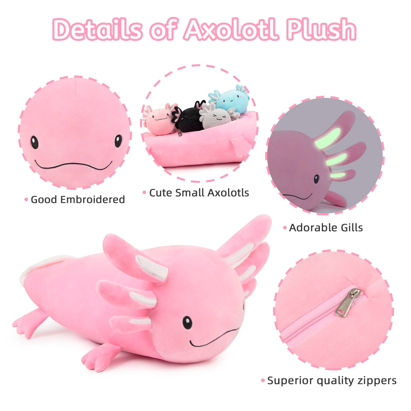 Niuniu Daddy 24 + Inch Axolotl Plush Toys With 4 Babies Inside- Soft Pink Axolotl Stuffed Animal, Cute Birthday Or Christmas Plu