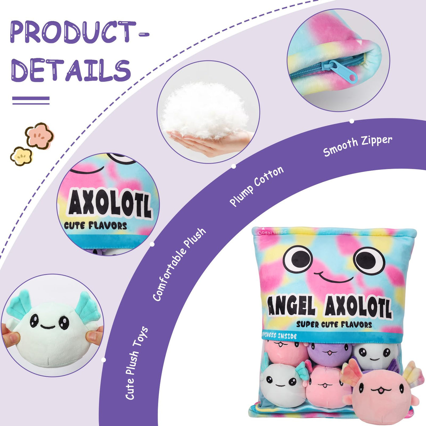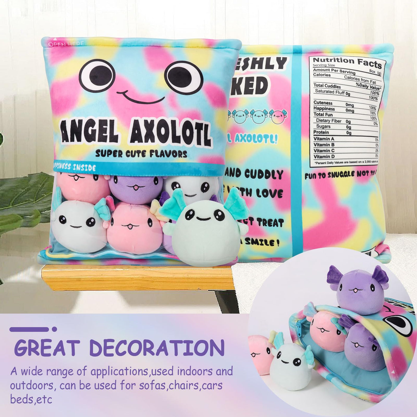 [Adorable Plush Pillow With 6 Axolotl Plush] Inspired By The Endangered Salamander Native To Mexico, We Have Designed This Axolotl Pillow With Six Stuffed Axolotl Plush Toys. This Axolotl Plush Pillow Would Catch Your Eyes At The Very First Sight And Make You Want To Know More About This Little Creature. It Is Also A Hit To Party And Family Unions. Everyone Would Take And Post Photos With This Cute Axolotl Stuffed Animal Pillow.