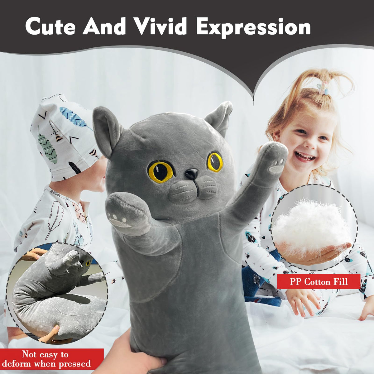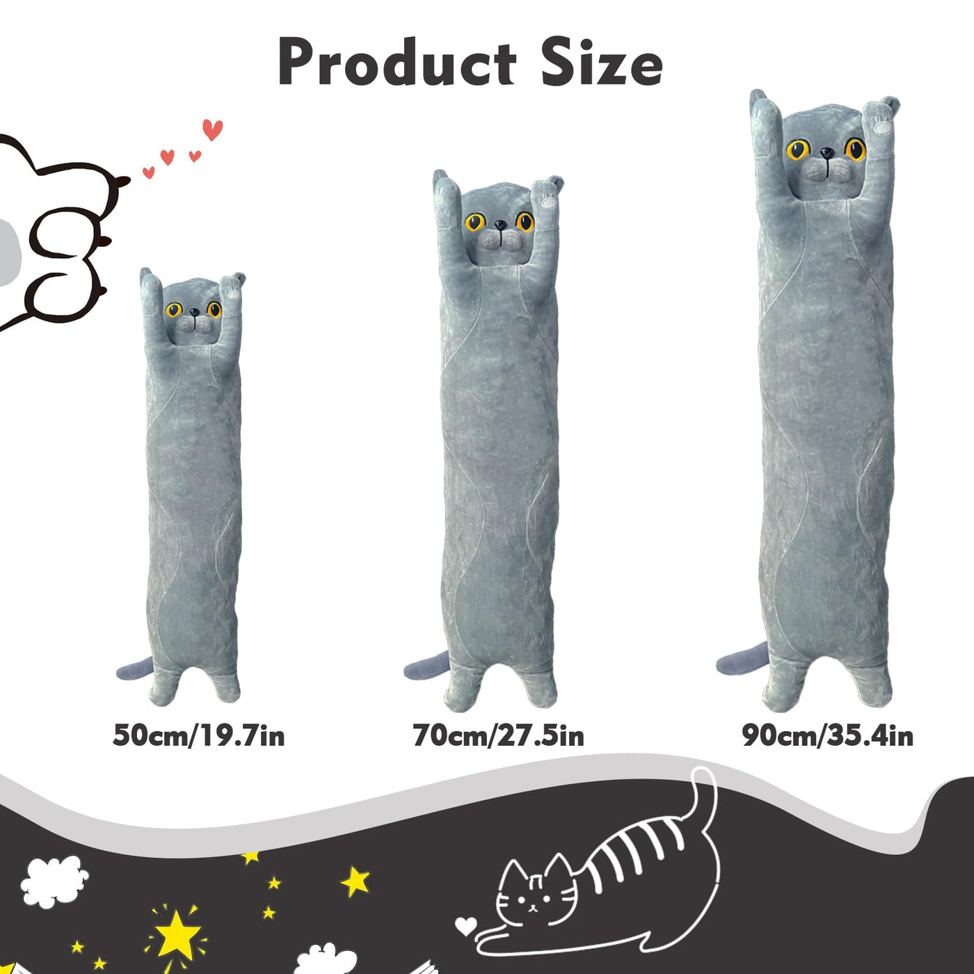 Nxnynz Long Cat Plush Pillow, 35.4In Cute Gray Cat Plushie Stuffed Animals Body Pillow, Kawaii Kitten Soft Plushie Doll Toy Birt