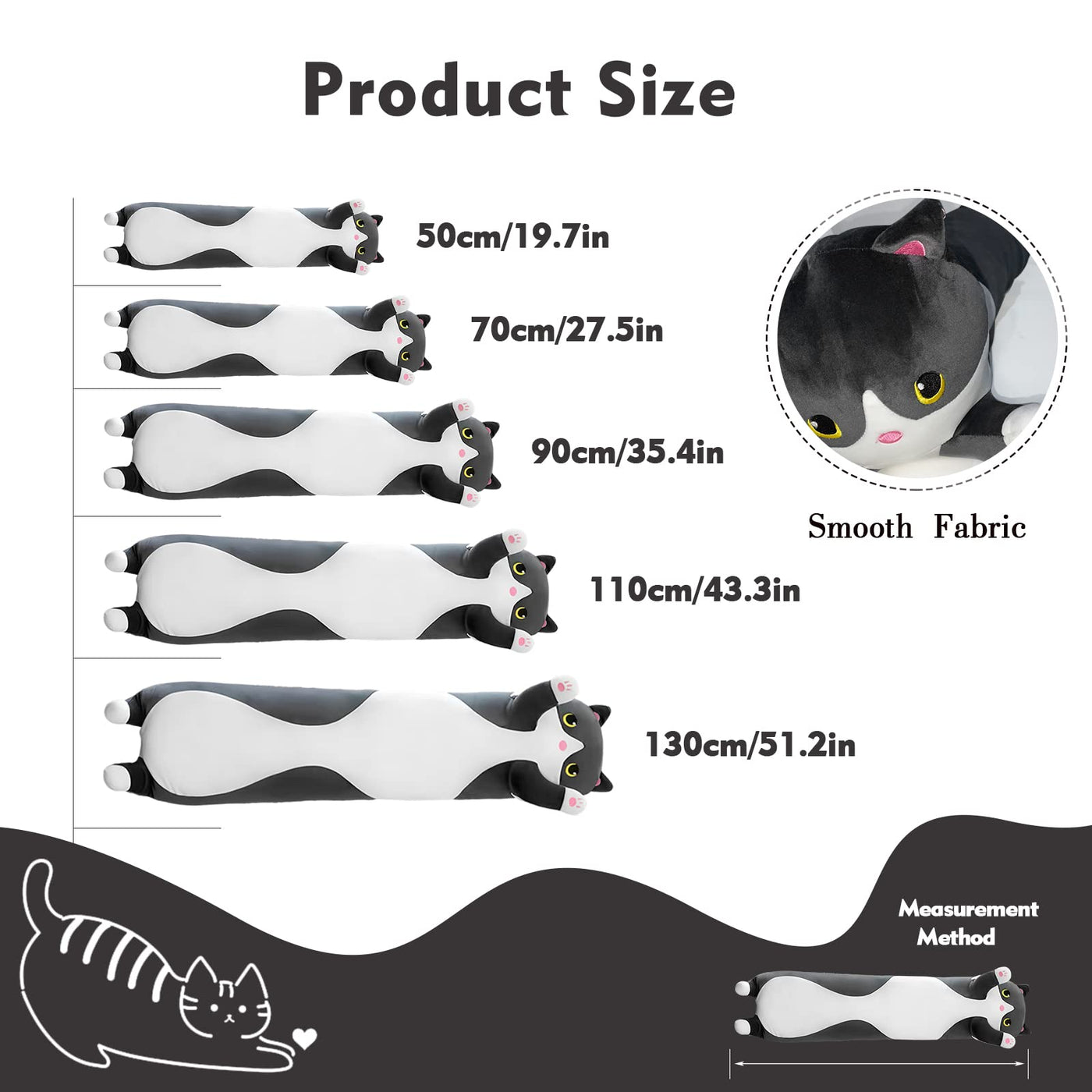 Nxnynz Long Cat Plush Pillow, 43.3In Cute Black Cat Plushie Stuffed Animals Body Pillow, Kawaii Kitten Soft Plushie Doll Toy Bir