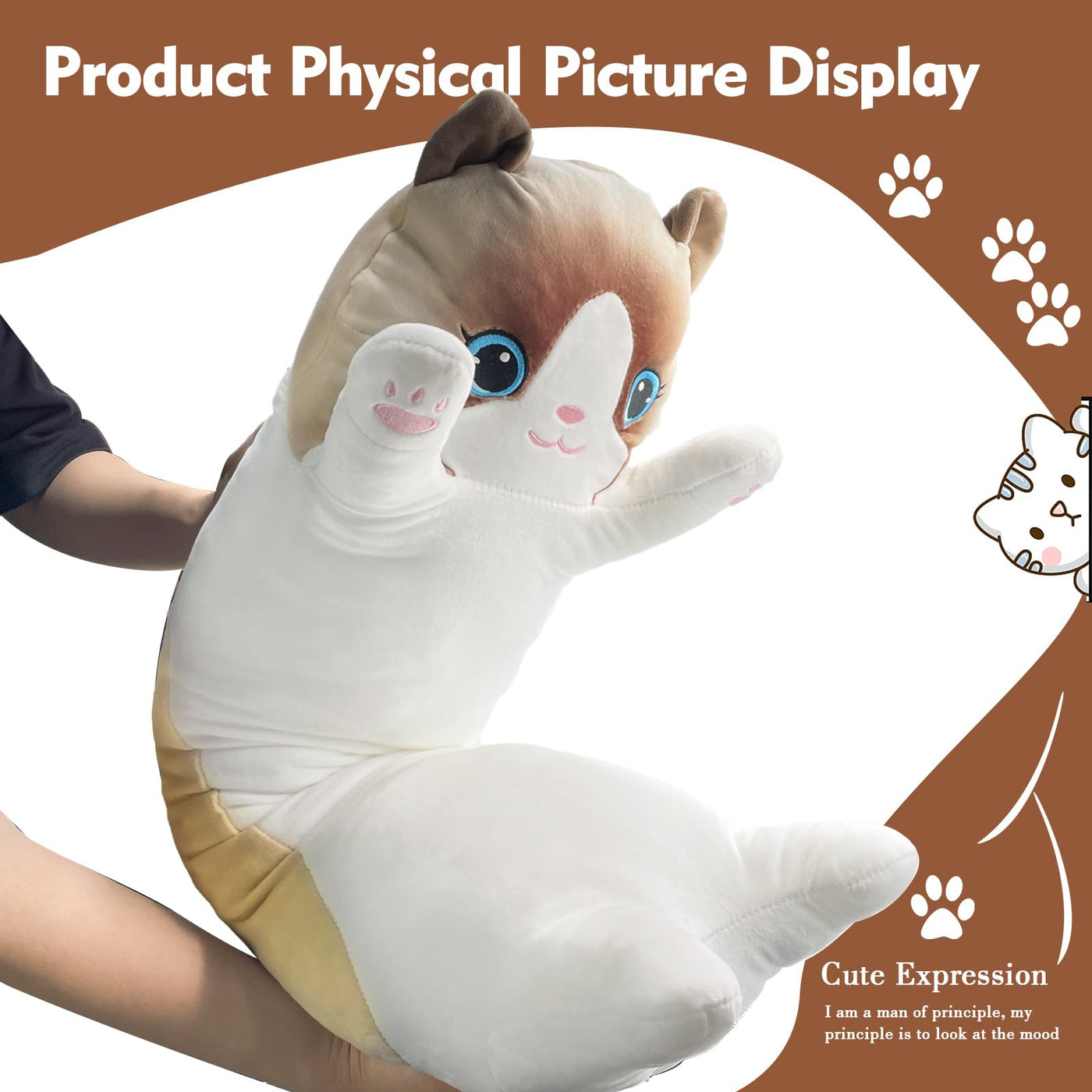 Nxnynz Long Cat Plush Pillow, 43.3In Cute White Cat Plushie Stuffed Animals Body Pillow, Kawaii Kitten Soft Plushie Doll Toy Bir