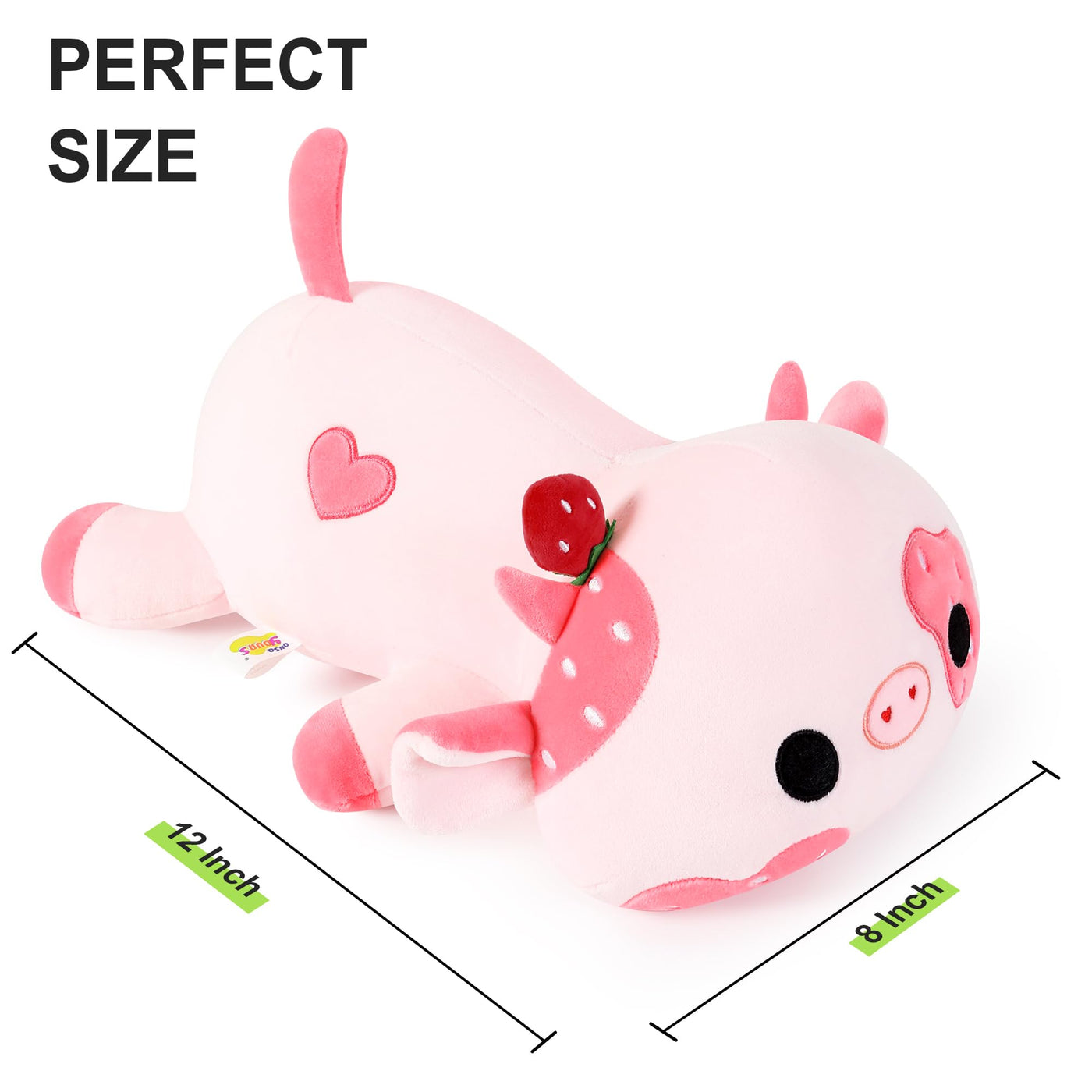 Onsoyours Cute Cow Plushie, Soft Stuffed Strawberry Cow Squishy Plush Animal Toy Pillow For Kids (Strawberry Cow, 12')